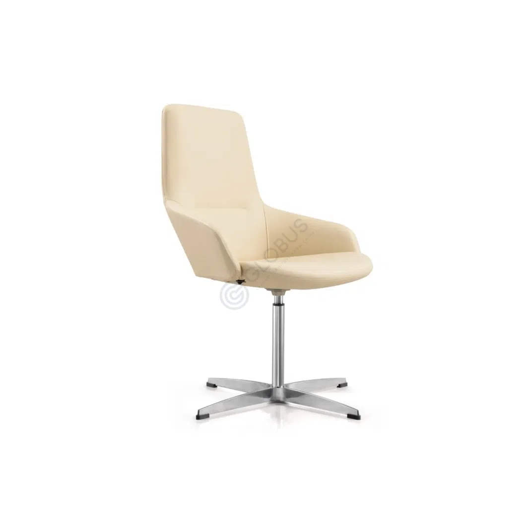 Crafted with careful attention to detail, the armchair features smooth PU upholstery providing a luxurious feel and effortless maintenance. The robust base is constructed from polished aluminum, offering stable support and mobility with its integrated casters. Beneath the surface, polyurethane ensures cushioned comfort during extended periods of use.