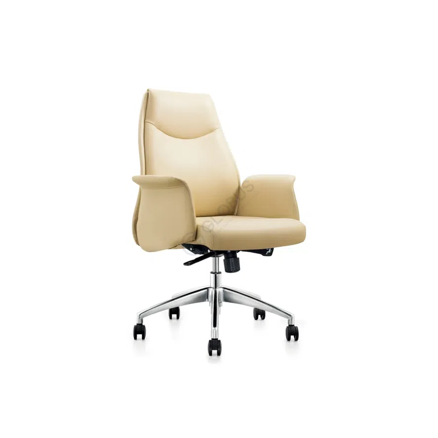 Beneath the comfortable seating, a durable aluminum base provides stability and supports effortless movement with its integrated wheels. The chair's core structure utilizes robust plywood and cushioning polyurethane, ensuring both lasting quality and responsive comfort throughout the workday. This design seamlessly blends functional support with understated elegance, making it a valuable addition to a productive home office environment.