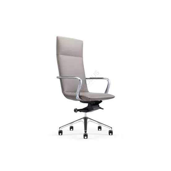 Resting on a sturdy five-star base also constructed from polished aluminum, the armchair provides stable support and smooth mobility. Its casters allow for easy movement across the floor, while the integrated mechanism offers essential adjustments for height and tilt, adapting to individual needs and preferences within the home office environment.