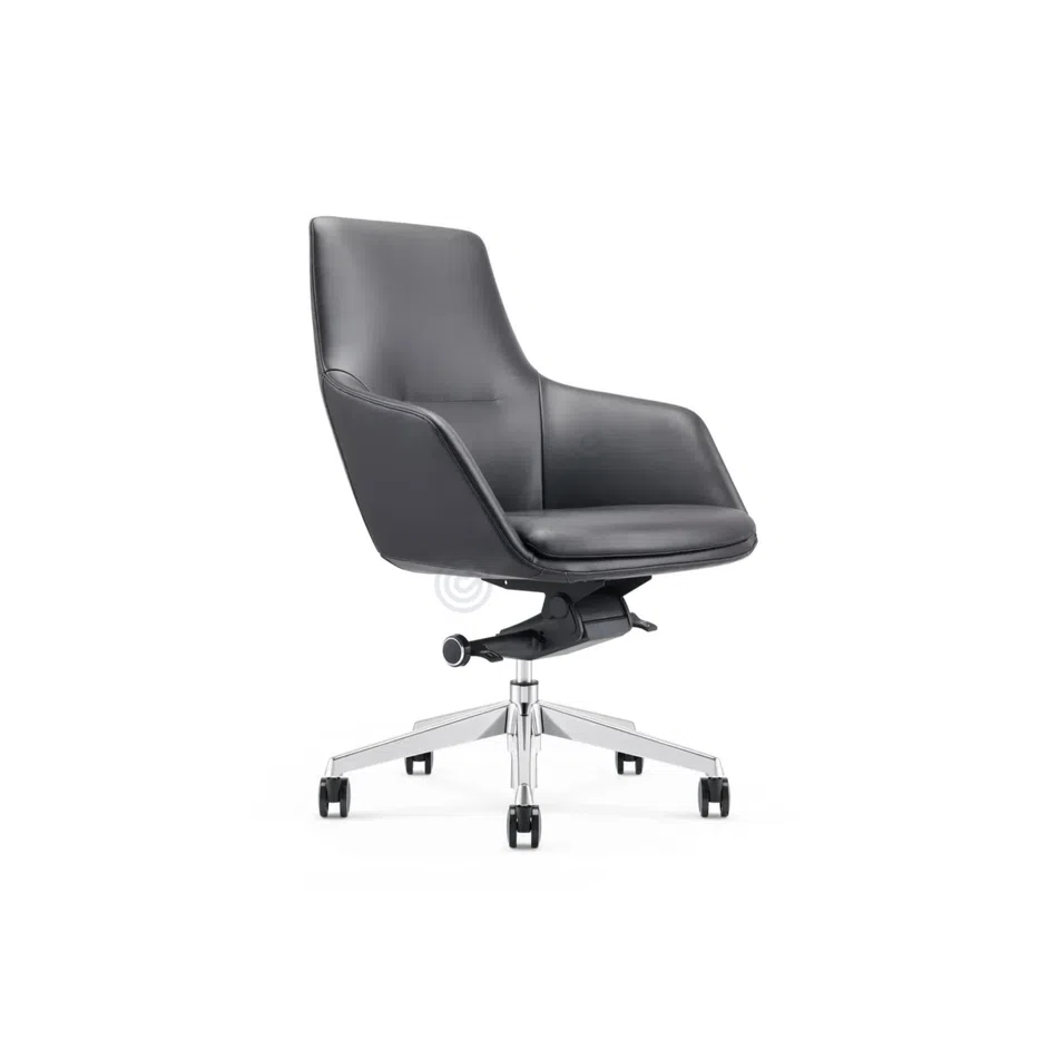 This armchair is ideally suited for a contemporary home office, enhancing the environment with its refined appearance and functional design. It is a statement piece that combines elegance with practicality for productive work.
