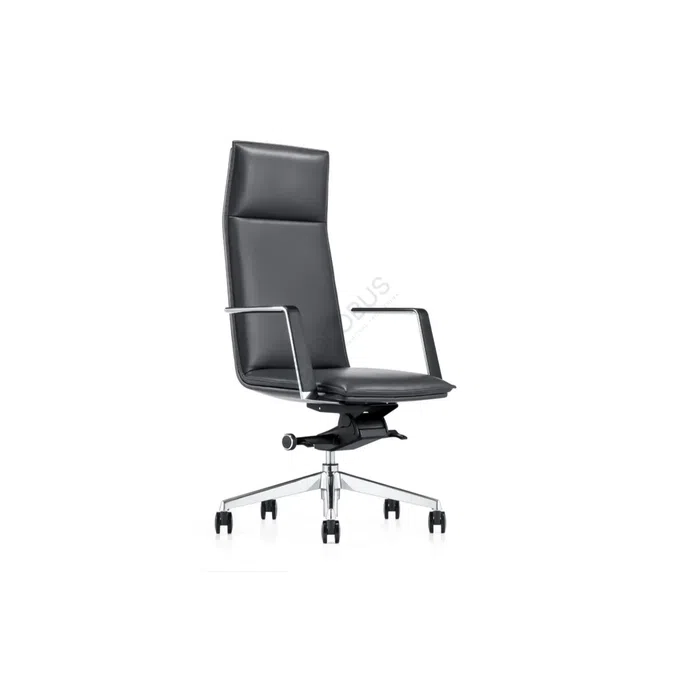 The chair's clean lines are complemented by striking aluminum components, including the sleek armrests and the polished base structure. These elements provide a strong visual appeal and contribute to the chair's robust construction. Polyurethane parts are integrated for smooth operation and durability, ensuring essential ergonomic functions work reliably while maintaining the chair's elegant form. This piece balances aesthetic design with practical functionality, making it a fitting addition to any contemporary home office environment.