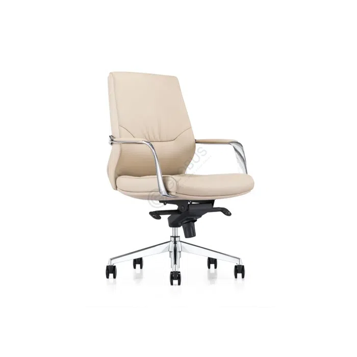 The sturdy aluminum base is fitted with durable casters, ensuring smooth and easy mobility across your workspace. This armchair is designed to combine aesthetic appeal with practical functionality, creating a stylish and supportive focal point for any modern home office setup.