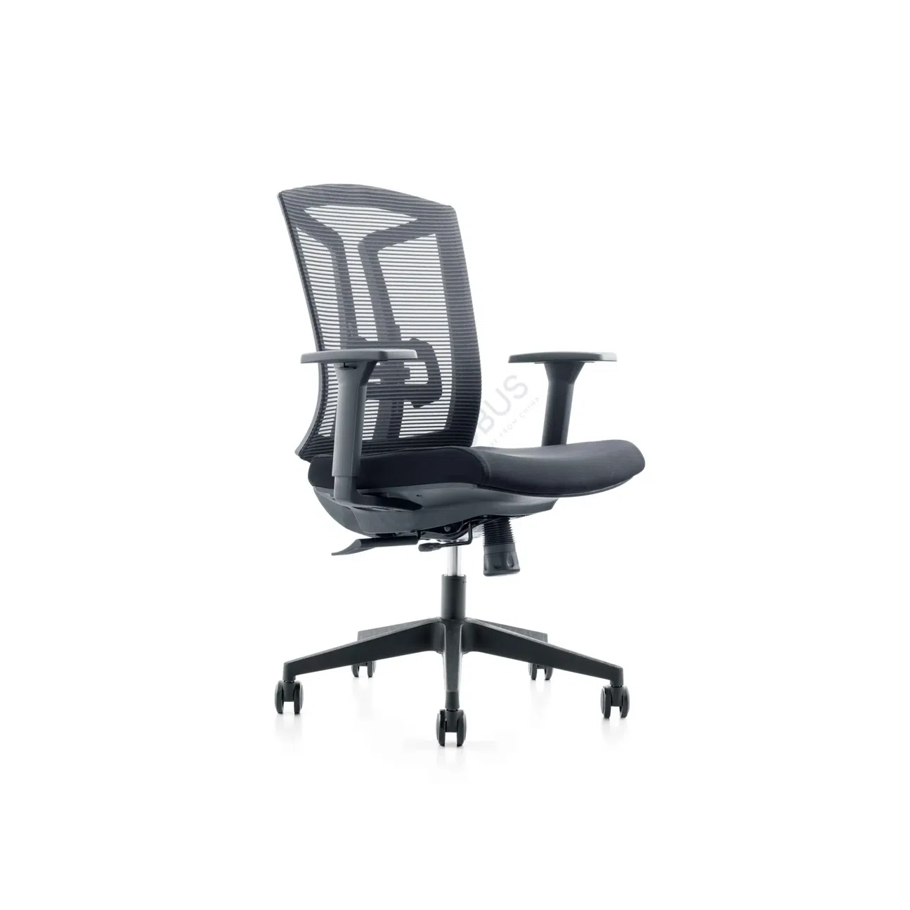 Adjustable armrests provide further customizable support for the user. The chair incorporates robust components, utilizing materials like polyamide, nylon, and glass fibre in its structure for durability and stable functionality.