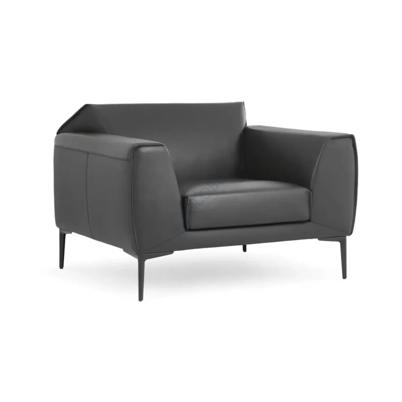 Crafted with a robust internal structure of solid wood, this sofa offers reliable durability and support. The frame is complemented by sleek steel legs, adding a touch of industrial modernity and ensuring stability. The upholstery is rendered in high-quality microfiber leather, providing a smooth, elegant surface that is both comfortable and designed for resilience in daily use.