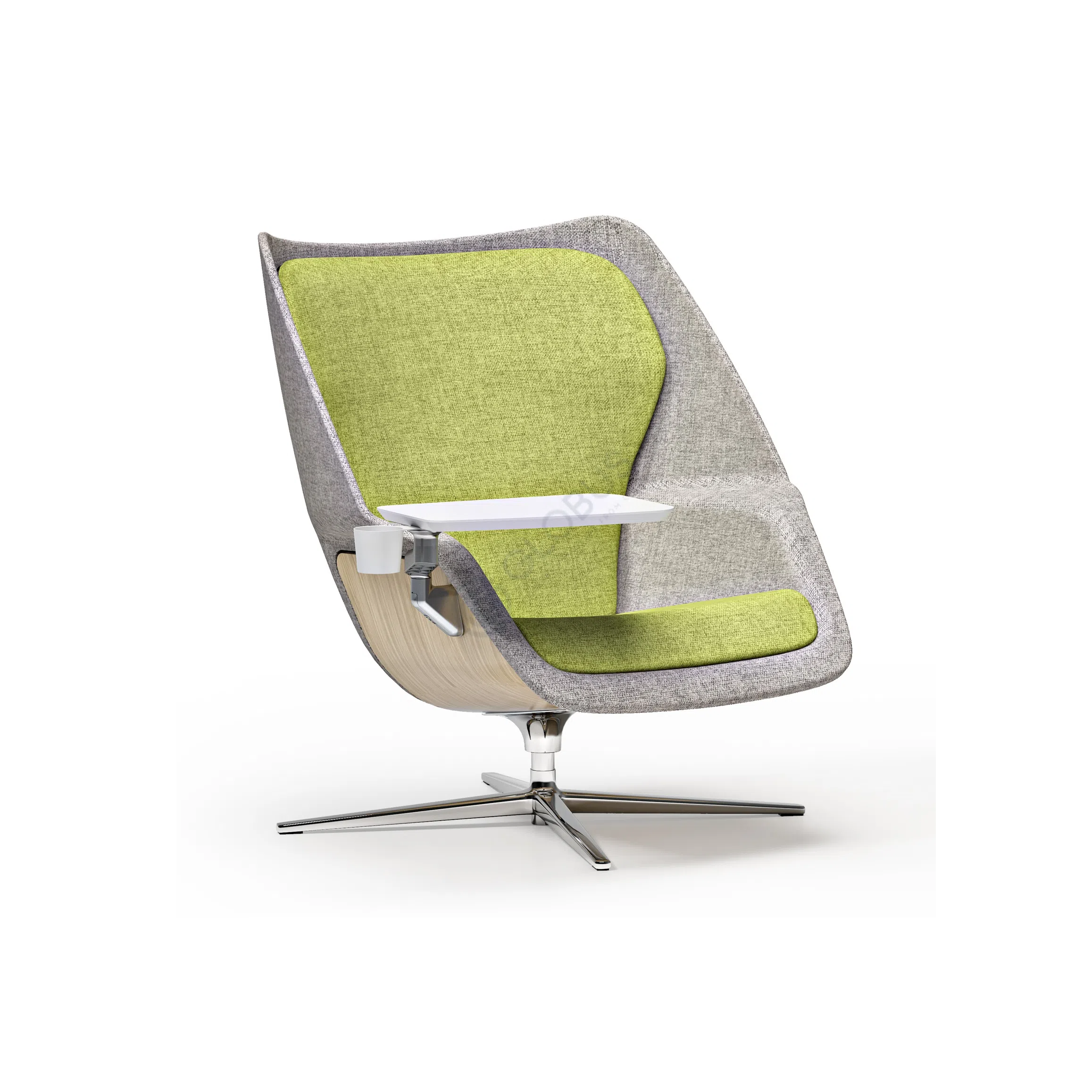 Crafted using premium materials, the armchair features a sturdy aluminum swivel base, allowing for effortless movement and stability. The supportive shell is elegantly finished in a quality textile, providing a refined texture. Plush cushions, upholstered in a contrasting textile, offer inviting softness for seated comfort throughout your day. A subtle accent panel integrates seamlessly into the design.