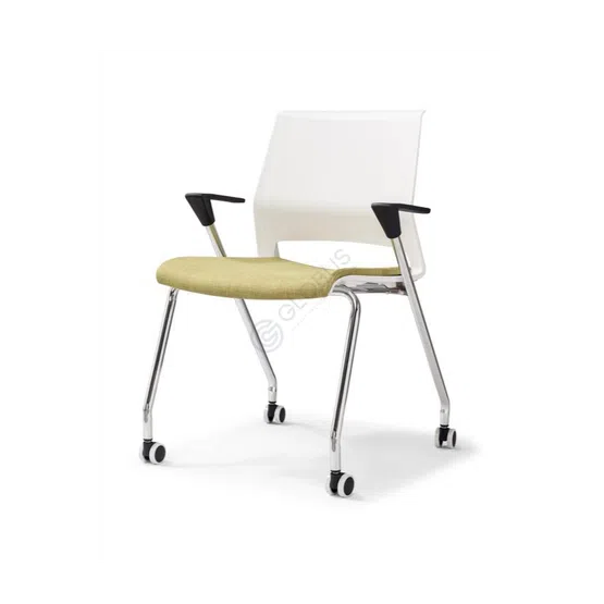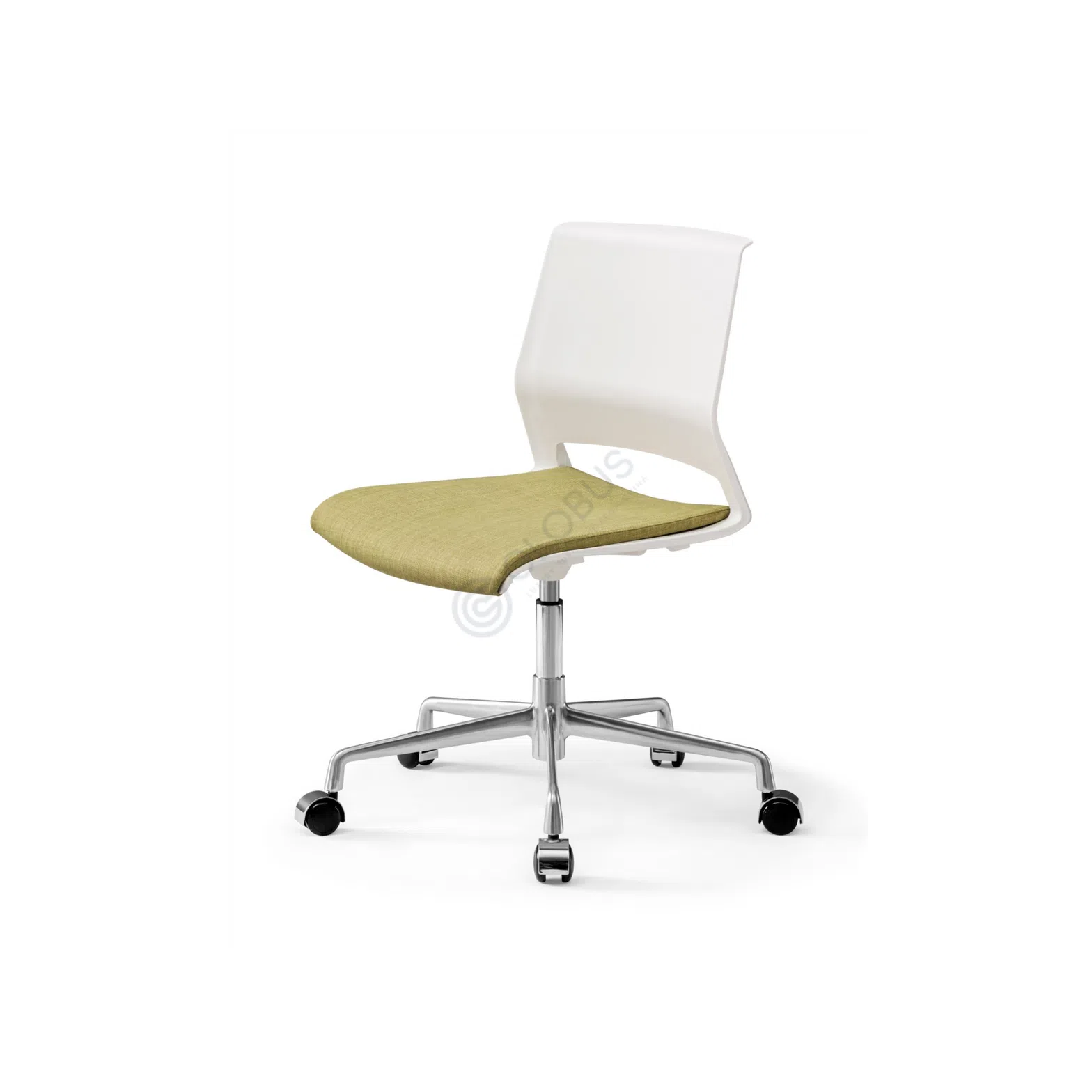 Mobility and storage are key aspects of its design. The chair rests on a sturdy base fitted with smooth-rolling casters, allowing effortless movement across your floor. Beneath the seat, a ventilated platform serves as a handy shelf, offering dedicated space for storing books, files, or personal items, contributing to a neat and organized area. Crafted from durable materials including polypropylene, aluminum, nylon, fiberglass, and other plastics, this piece combines lightweight agility with reliable performance.