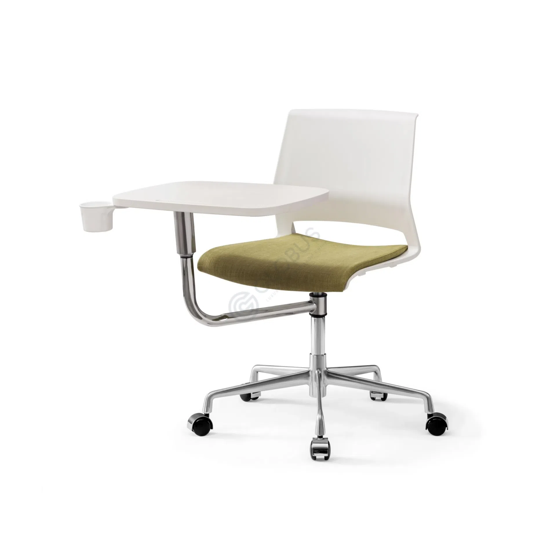 This chair is equipped for convenience and productivity. It includes a practical swing-out writing tablet that provides a stable surface for a laptop, tablet, or notepad. Neatly integrated into the tablet is a cup holder, keeping your drink secure and accessible while you work or study.