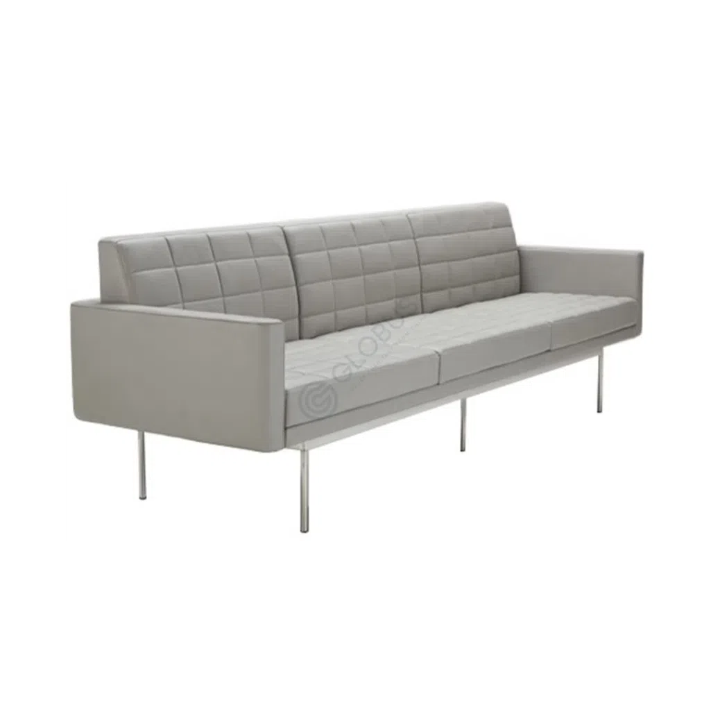 The chair's distinctive quilted pattern on the back and seat provides both visual interest and comfortable support. It is set upon a slender frame crafted from durable steel and stainless steel, lending an airy yet sturdy foundation to the design.