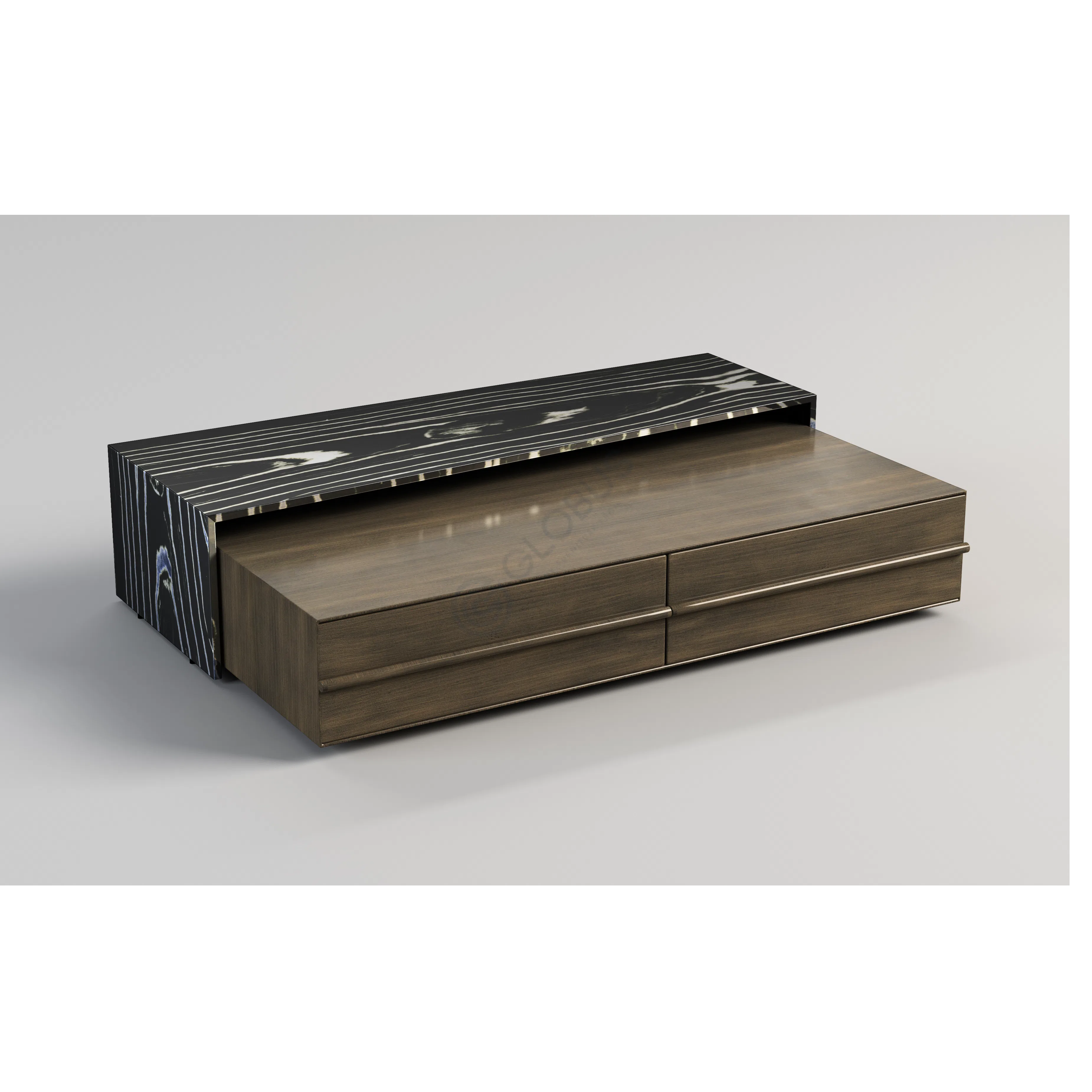 This versatile console is designed to enhance various spaces within the home. It serves as an eye-catching piece in a living room or adds a touch of contemporary elegance to a hallway. Use it to display curated items or simply appreciate its artistic shape.