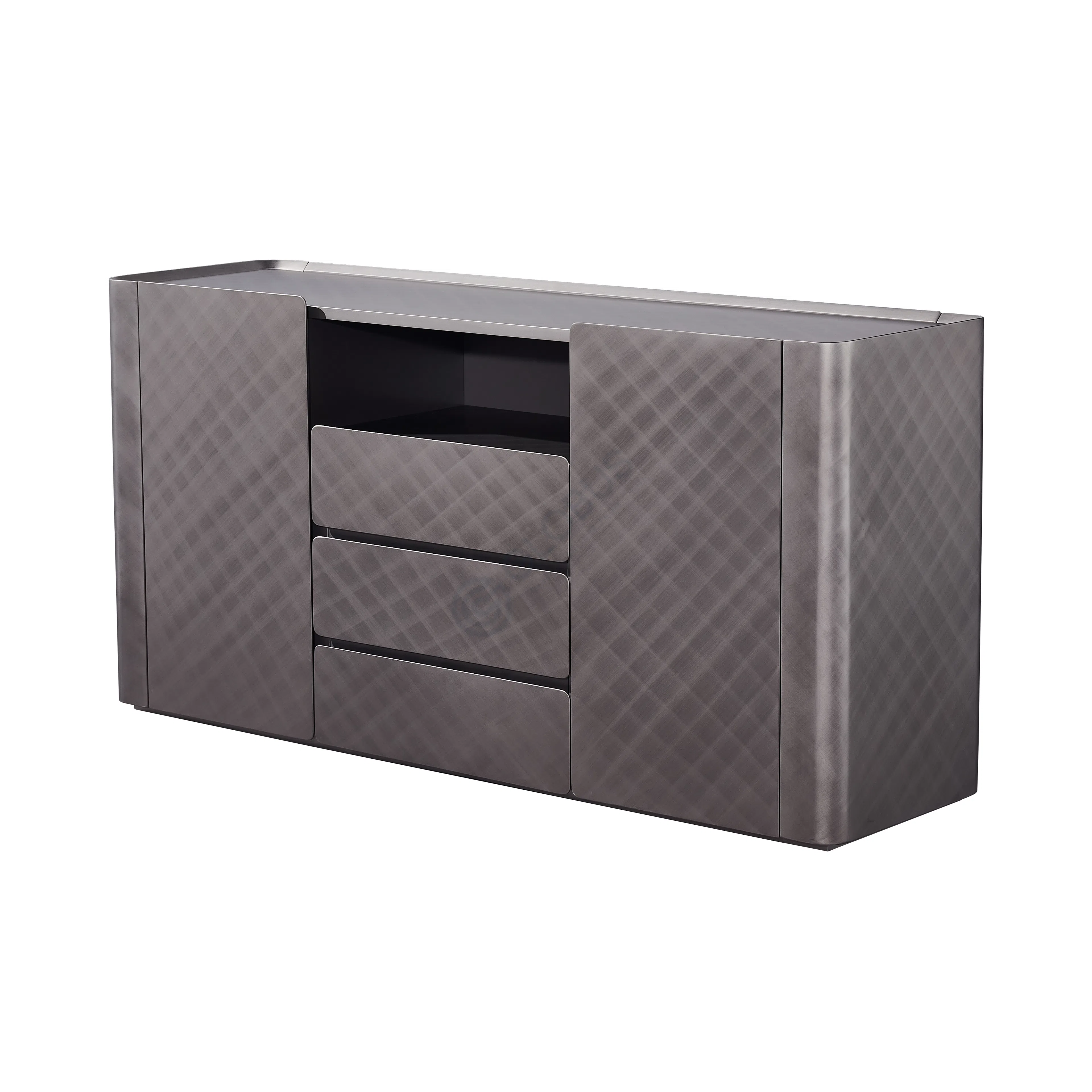 Expertly constructed from sturdy plywood and reinforced with steel elements, this TV stand embodies both durability and contemporary design. The deep, rich tone of its finish enhances the intricate pattern, creating a luxurious feel without being ostentatious. This thoughtful combination of materials ensures a resilient structure that promises enduring beauty.