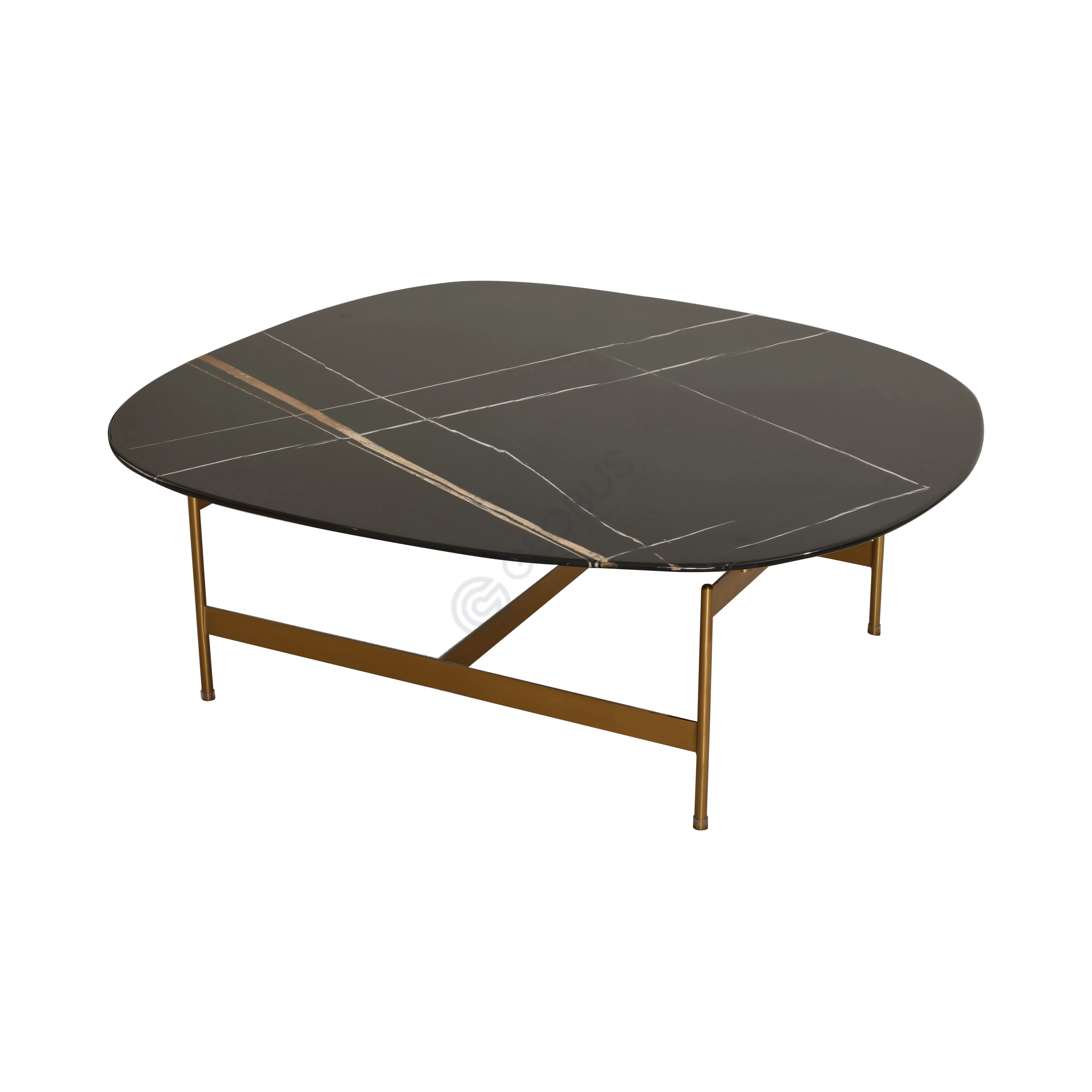 This modern side table presents a distinct presence with its organically shaped top, reminiscent of a polished, smooth pebble. Its unconventional form brings a soft, fluid dynamic to any contemporary living space, moving beyond traditional geometric lines.