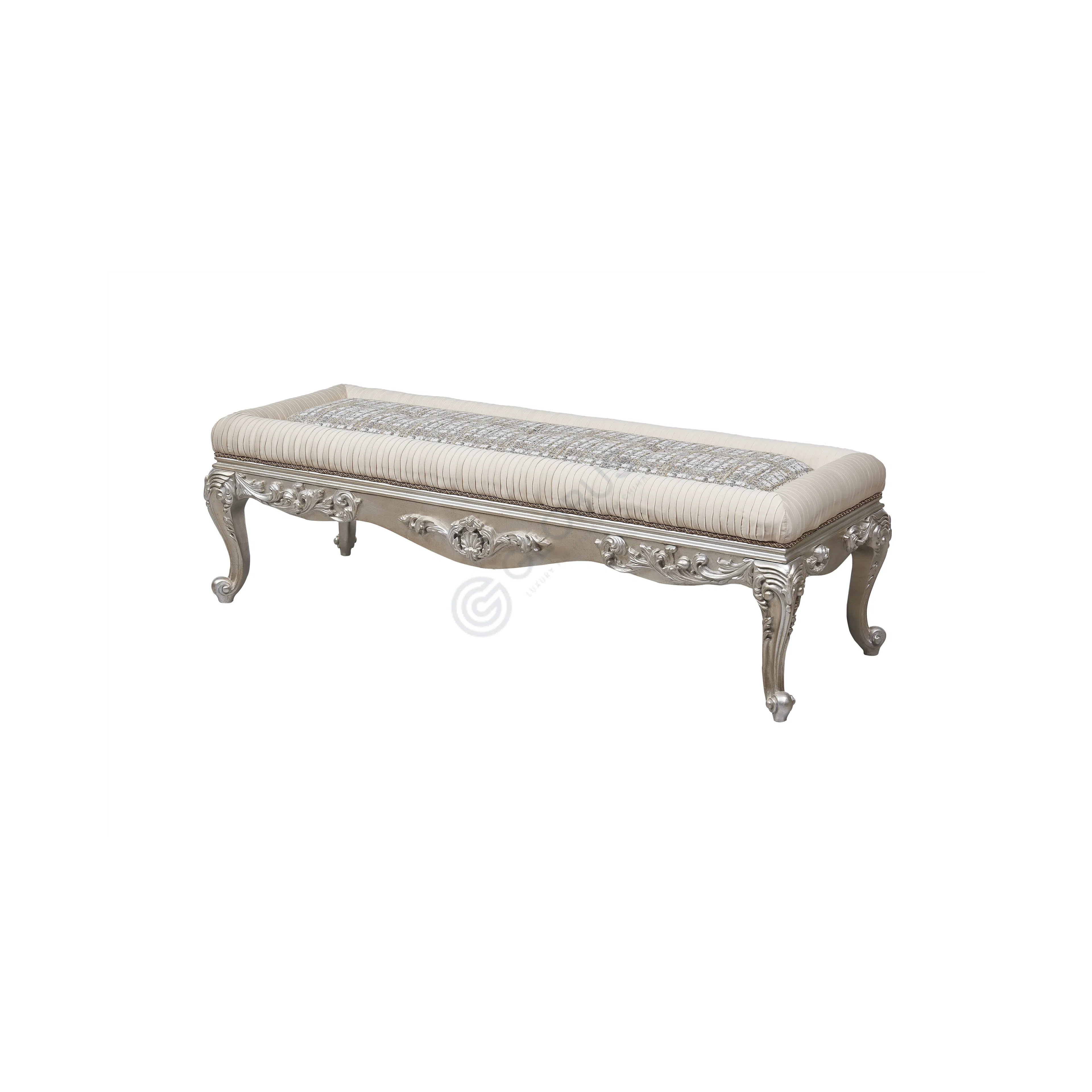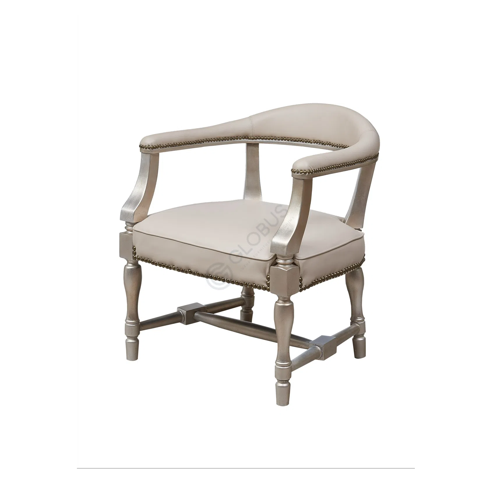 Crafted with a blend of solid wood, natural veneer, plywood, and metal elements, the piece showcases quality construction. The natural veneer doors display a beautiful pattern, contrasting with the elegant silver-toned finish on the frame, legs, and decorative accents. Detailed carving adds a layer of sophistication to the design, highlighting the craftsmanship.