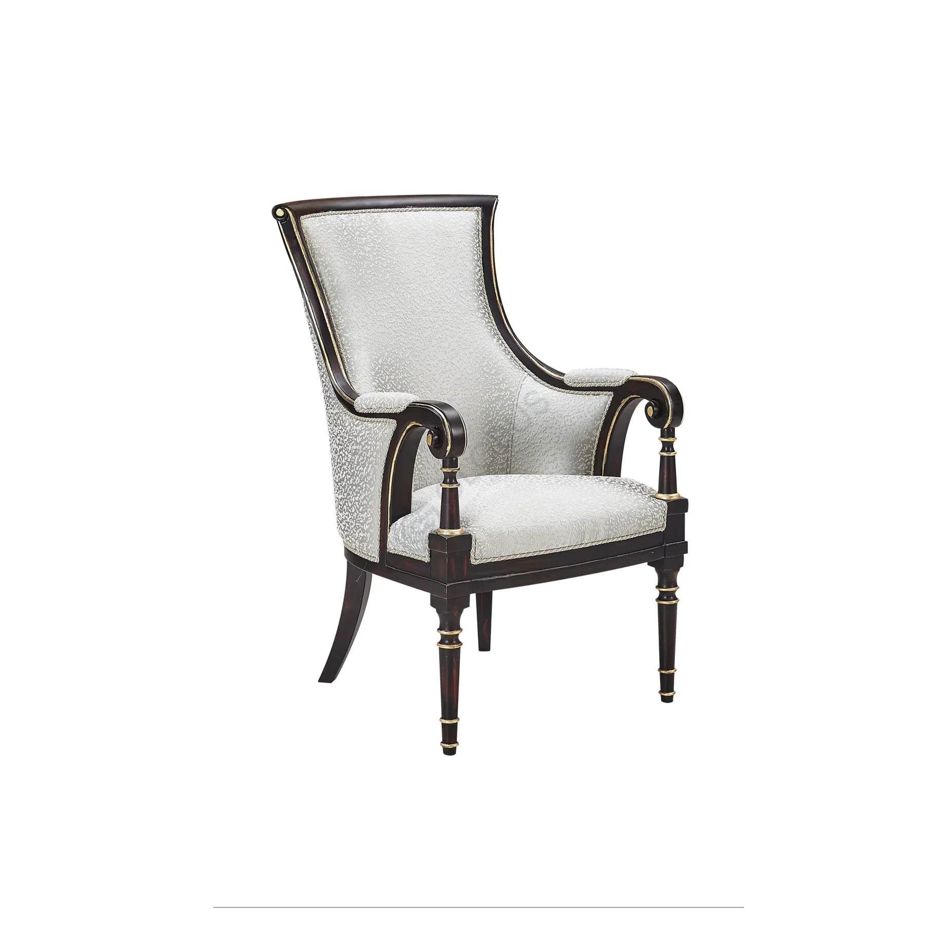 This dining chair captures the essence of European classic style, offering an elegant presence for your home. Its distinguished form features a beautifully shaped back and seat, upholstered in a textile with a refined pattern.