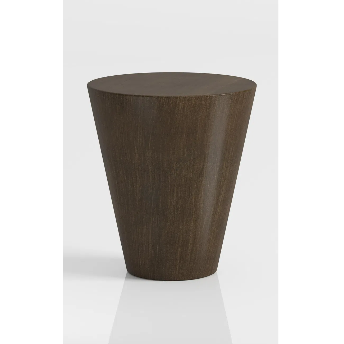 This coffee table makes a strong visual statement with its unique, sculptural form. A wide, tapering base rises gracefully to support a substantial circular top, creating a balanced and distinctive silhouette. The clean lines and bold shape embody modern design principles, offering a contemporary centerpiece for your room.