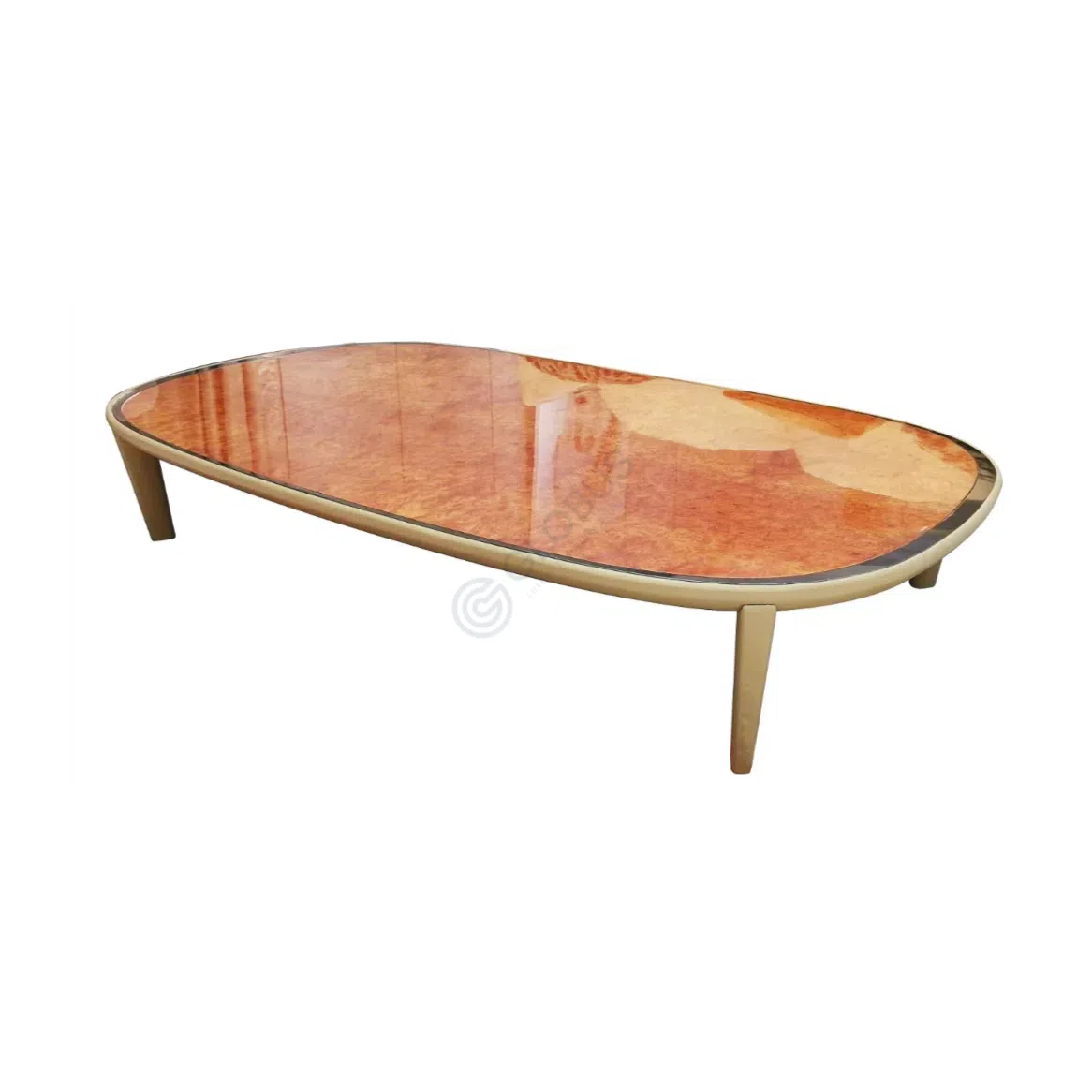 Beneath the refined top, the structure is built from solid wood, providing stability and lasting quality. The legs are sleek and tapered, finished in a rich, dark tone that complements the tabletop frame and enhances the table's contemporary profile.