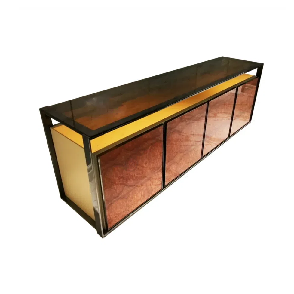 Designed to integrate seamlessly into a living room setting, this piece functions perfectly next to a sofa or chair. It offers a convenient surface for essentials or decorative items, bringing both practicality and a touch of sophisticated style to the space.