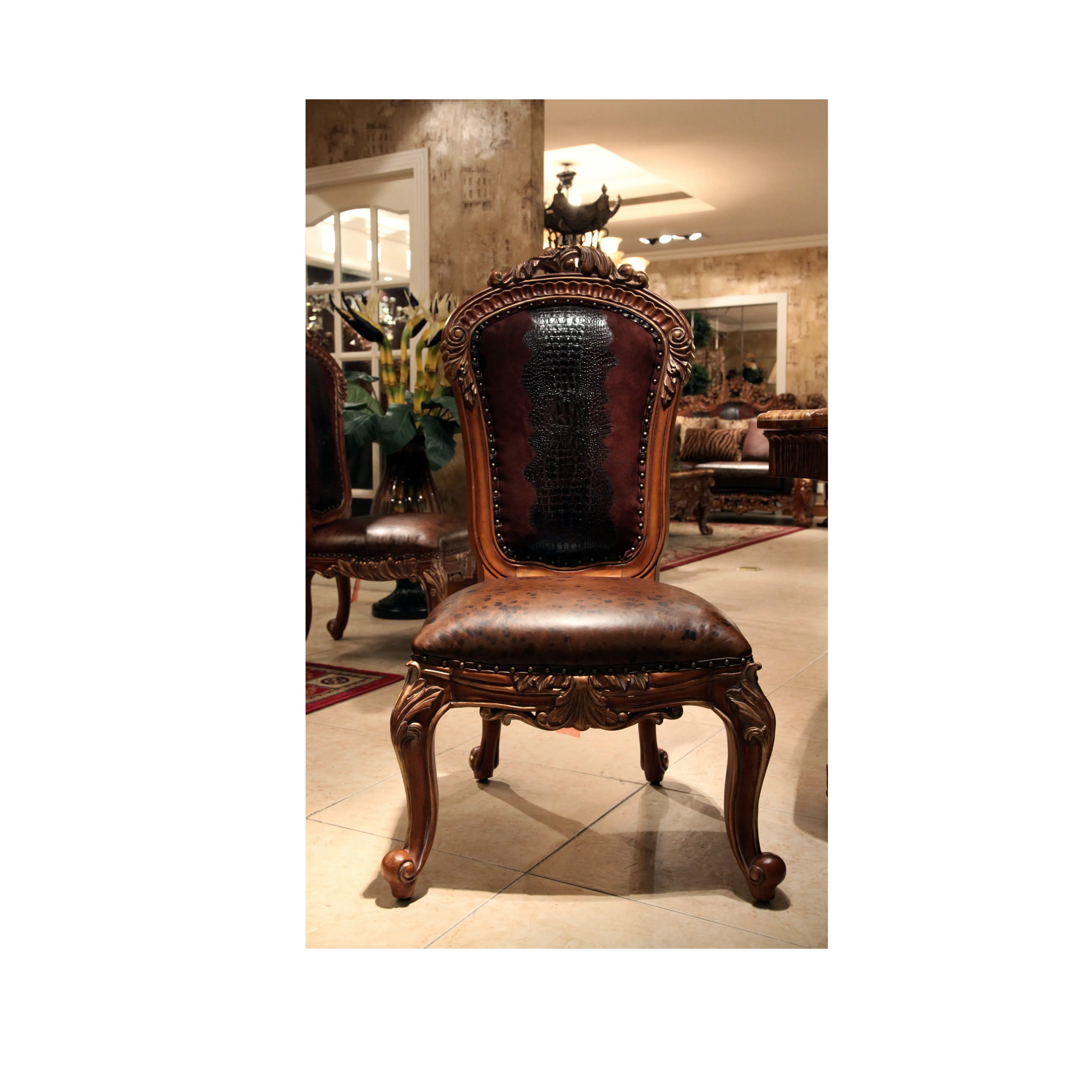 This dining chair brings a touch of European classic elegance to your home. Its design features rich details and a sophisticated silhouette, making it a beautiful addition to a dining room or kitchen setting.
