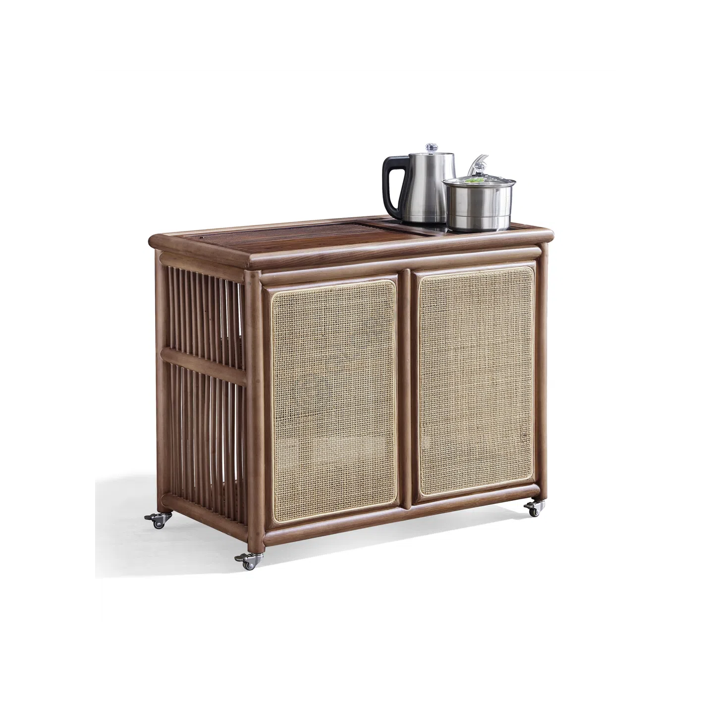 Delicate touches of natural rattan on the drawer fronts add a layer of sophistication and texture, subtly enhancing the aesthetic while providing a smooth tactile experience. These woven details not only pay homage to traditional craftsmanship but also provide breathability for your stored items.