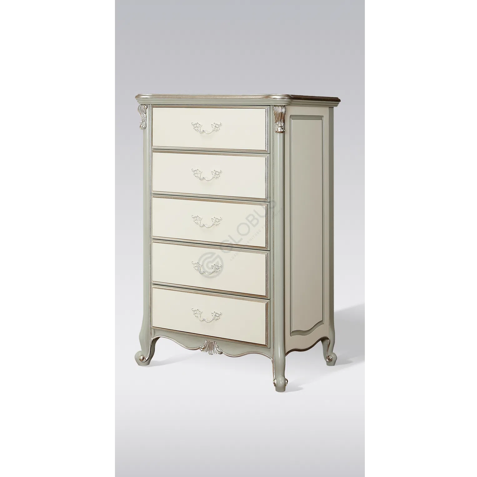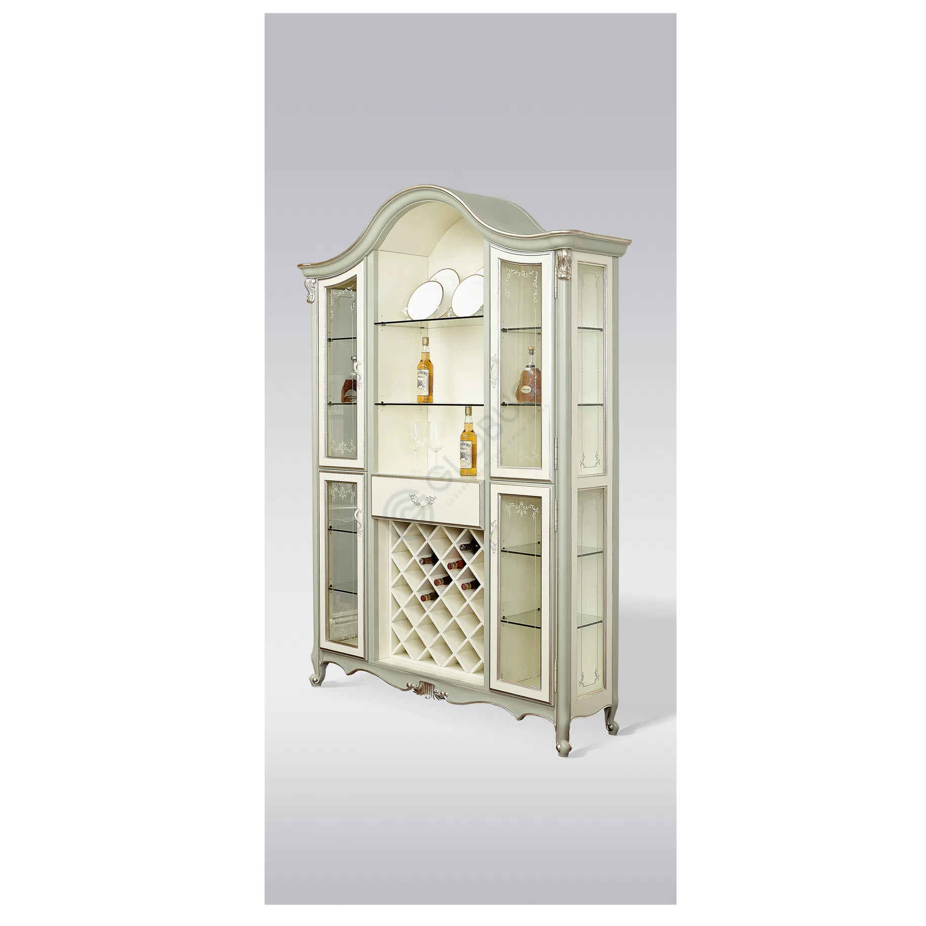 Constructed using solid wood and plywood, this piece offers both beauty and lasting quality. The application of patina highlights its craftsmanship and ensures it complements a luxurious interior setting.