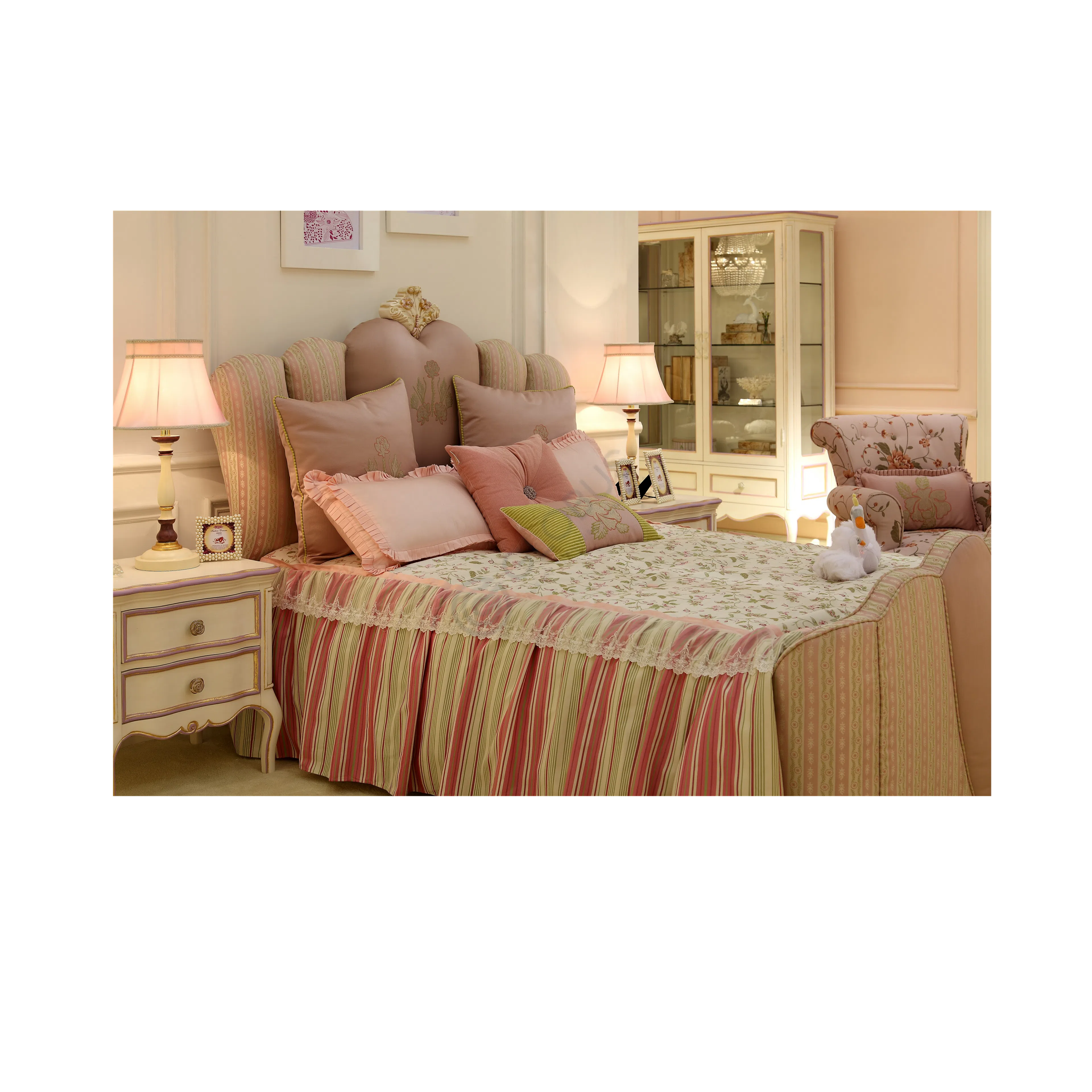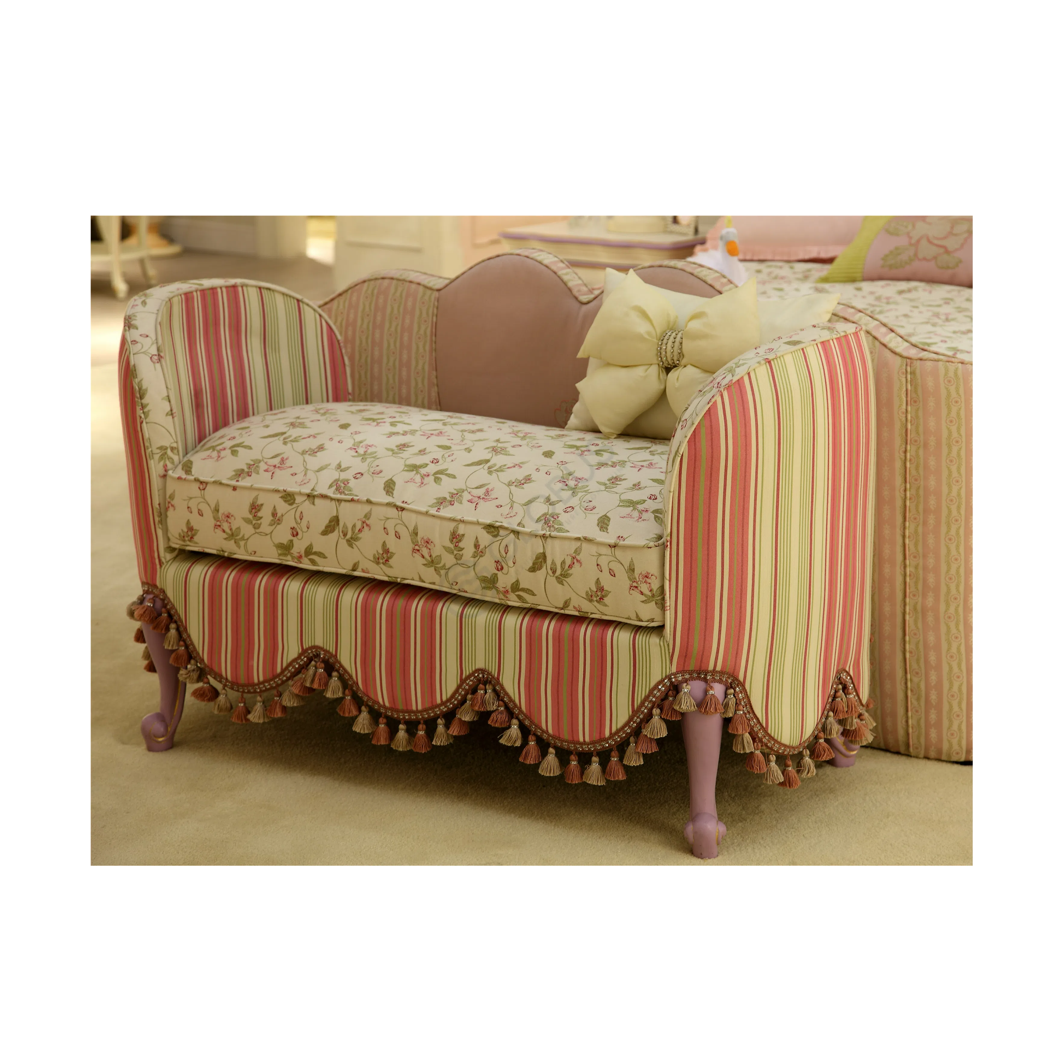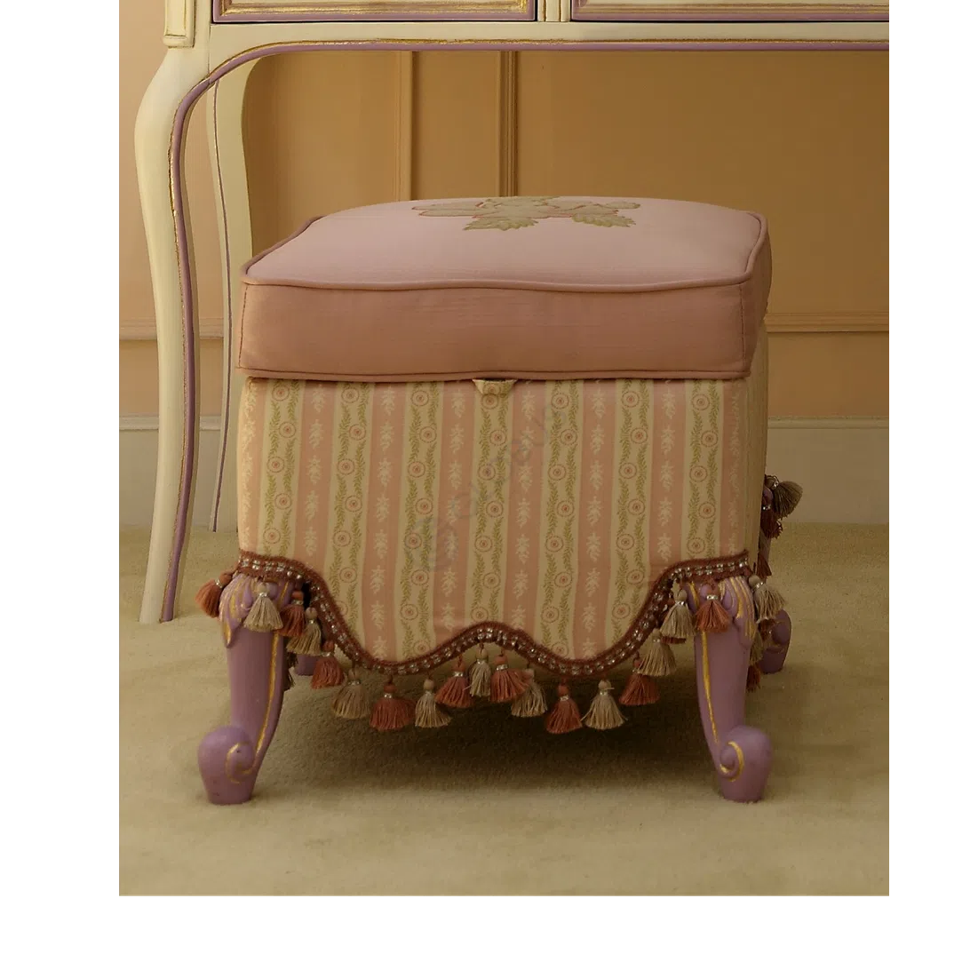 The desk features graceful cabriole legs and a beautifully shaped apron adorned with intricate carving, characteristic of the Neo-classic period. The thoughtful details, like the soft pastel trim, add a sweet and delicate touch, making it a perfect centerpiece for a sophisticated children's interior.