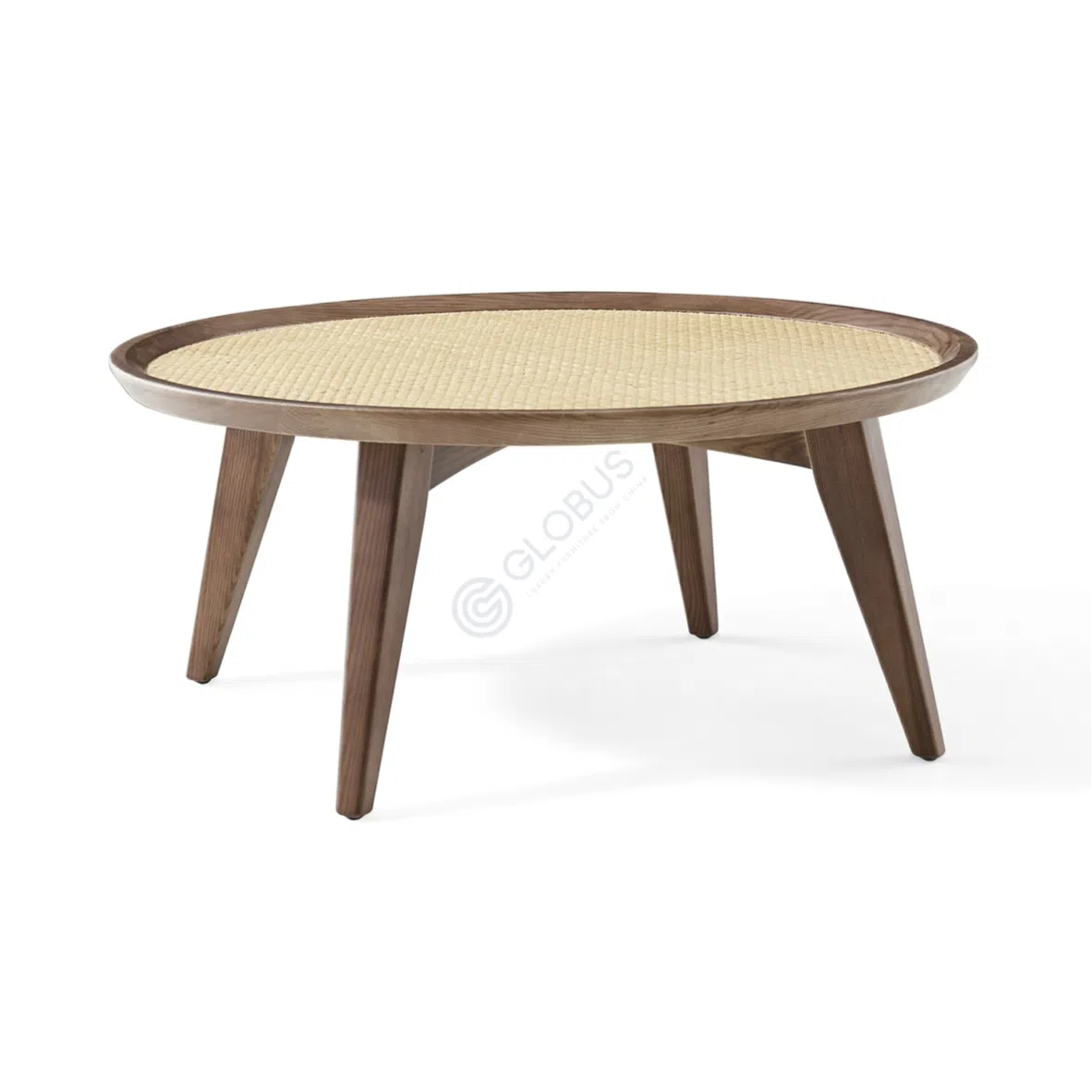 Introducing our meticulously crafted coffee table, an embodiment of timeless elegance and functional design. This exquisite piece is constructed from premium solid wood, ensuring robustness and a lasting presence in any room. The table top features beautifully woven natural rattan, offering a touch of organic texture that complements the sleek wooden frame. Its circular silhouette provides a generous surface space for your coffee cups, books, and decorative items, while the gently tapered legs promise stability and add a subtle mid-century modern flair. Ideal for cozy gatherings or as a serene addition to your reading nook, this coffee table marries classic charm with contemporary craftsmanship to anchor your living space in style.