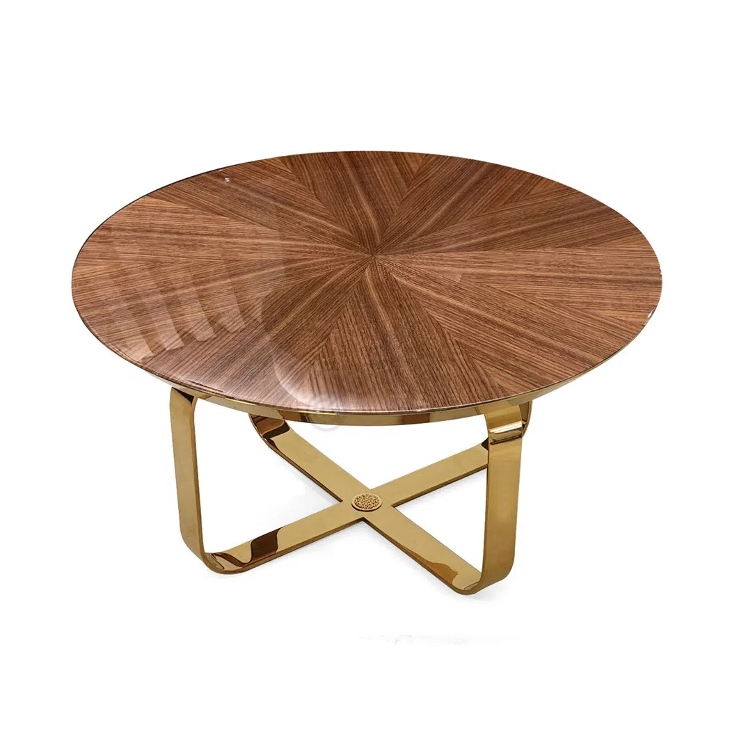 The design blends the geometric elegance of Art Deco with a clean, modern sensibility. The smooth curves of the base contrast beautifully with the simple round shape of the top, creating a piece that is both sophisticated and contemporary. This harmonious combination allows the table to complement various interior styles.