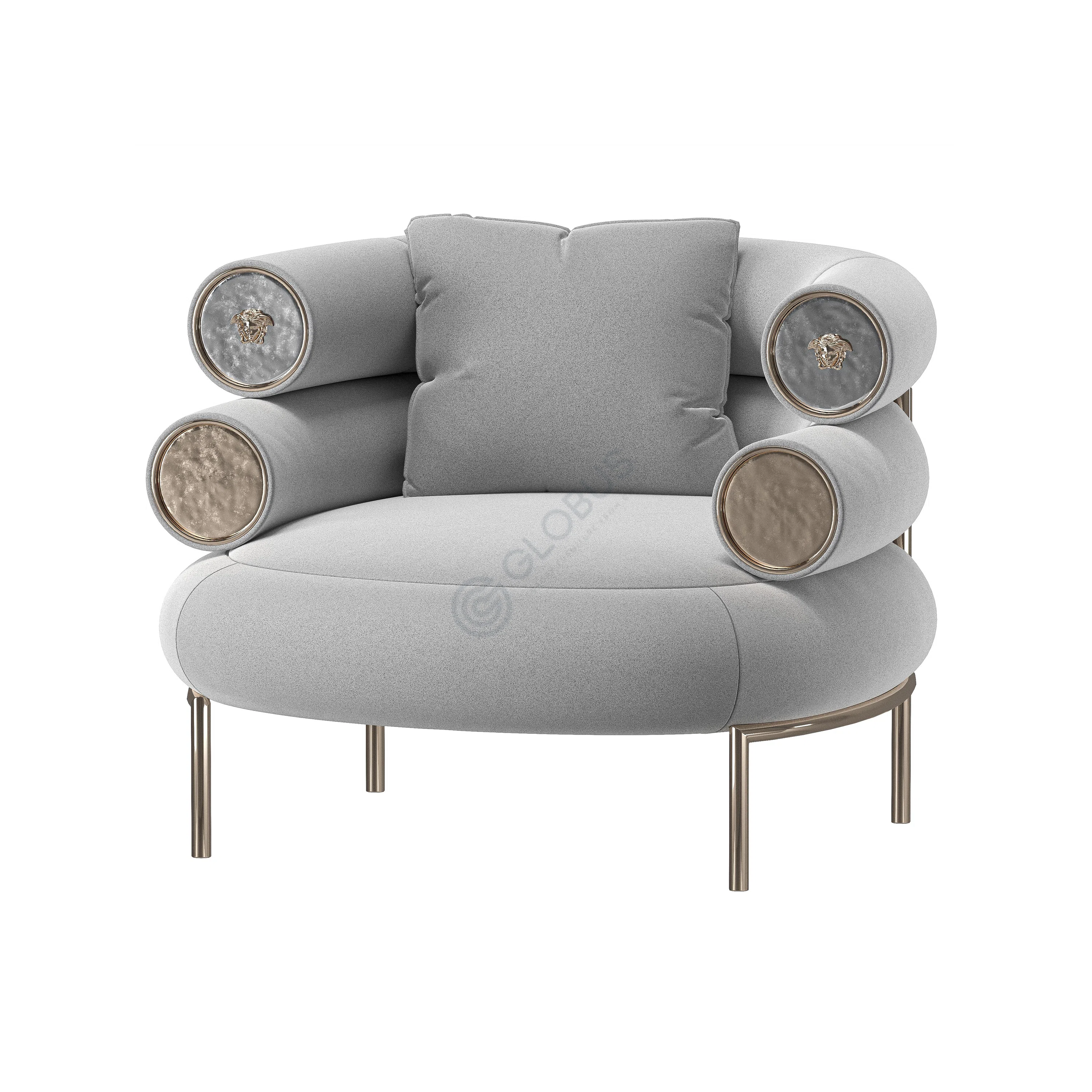 The generous circular surface encourages easy conversation and comfortable seating in a dining room or kitchen. Durable marble and stainless steel hold up to daily use, while the open base offers ample legroom.
