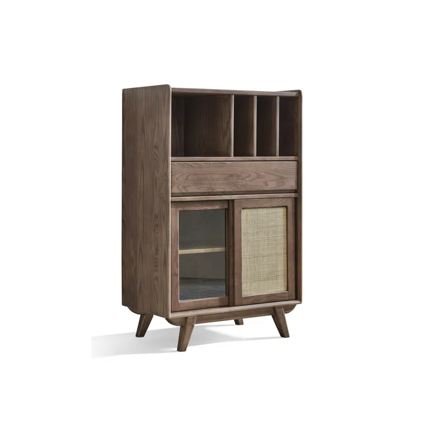 Discover the perfect blend of timeless elegance and practical design with our exquisite solid wood TV stand. Crafted with care, this piece features a beautiful natural grain that adds warmth and a touch of nature to your living space. The subtle accents of natural rattan on the cabinet door offer a serene, organic aesthetic that complements a variety of decor styles.