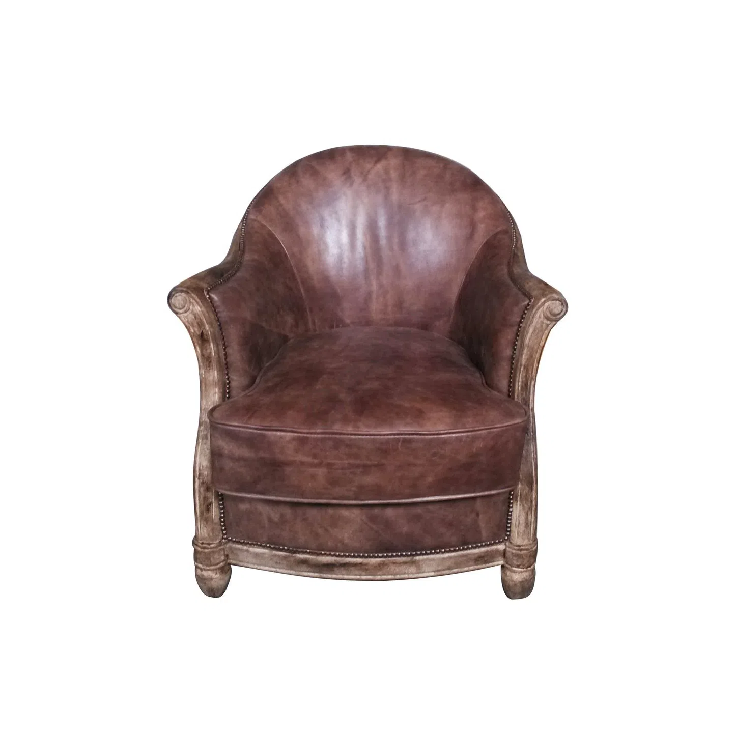 This armchair captures the essence of the Loft style, offering a seat that is both ruggedly handsome and deeply comfortable. It is upholstered in a luxurious, rich brown leather that presents a beautifully aged texture, giving each piece a unique narrative and a inviting, lived-in feel. The substantial form and distressed finish of the leather create an immediate sense of character.