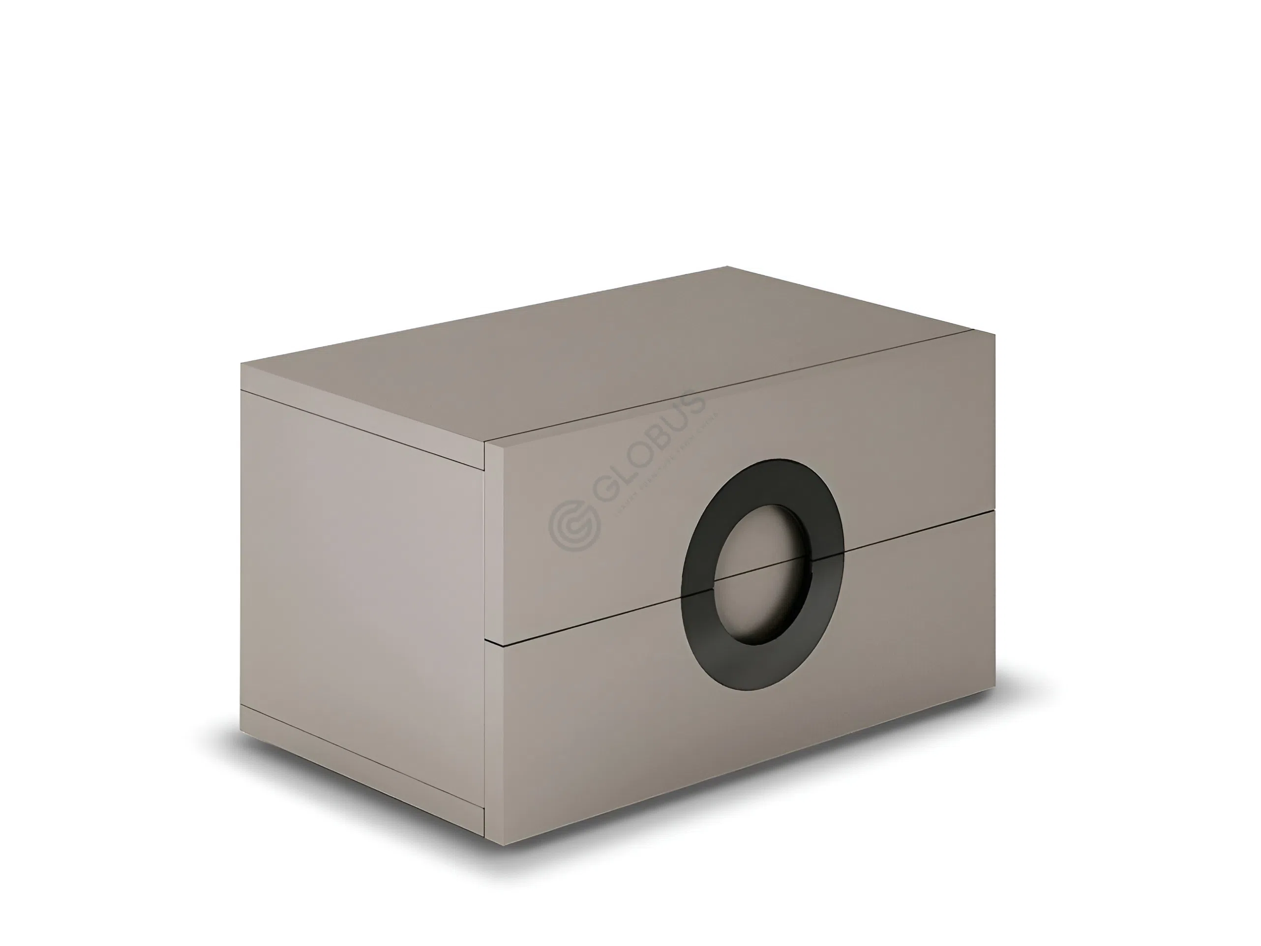 Thoughtfully designed, this piece features diverse storage options. On the left, two smooth-gliding drawers are subtly adorned with a striking stainless steel circular accent, which also functions as a unique handle. The central open shelving provides perfect compartments for media devices or decorative items, keeping essentials within easy reach. A spacious closed cabinet on the right offers discreet storage, maintaining a tidy and uncluttered appearance.