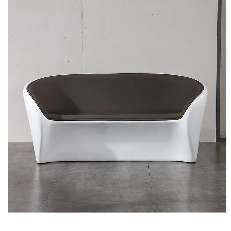 The base is crafted from durable plastic, molded into a smooth, sculptural shape. It incorporates four generous integrated openings, which provide convenient storage or display areas within its structure.