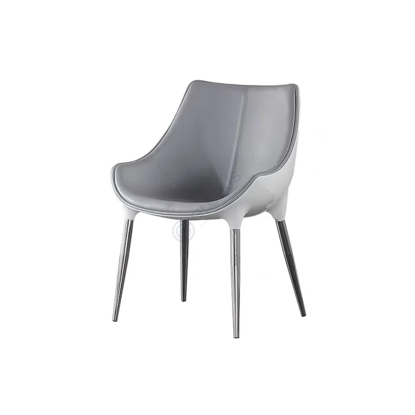 The seat and backrest are shaped from durable plastic, gracefully formed to provide support. This structure is then elegantly upholstered in a warm, rich tone of PU material, offering a smooth, tactile surface with the refined look of leather. The distinct color contrast between the upholstery and the chair frame adds visual interest.