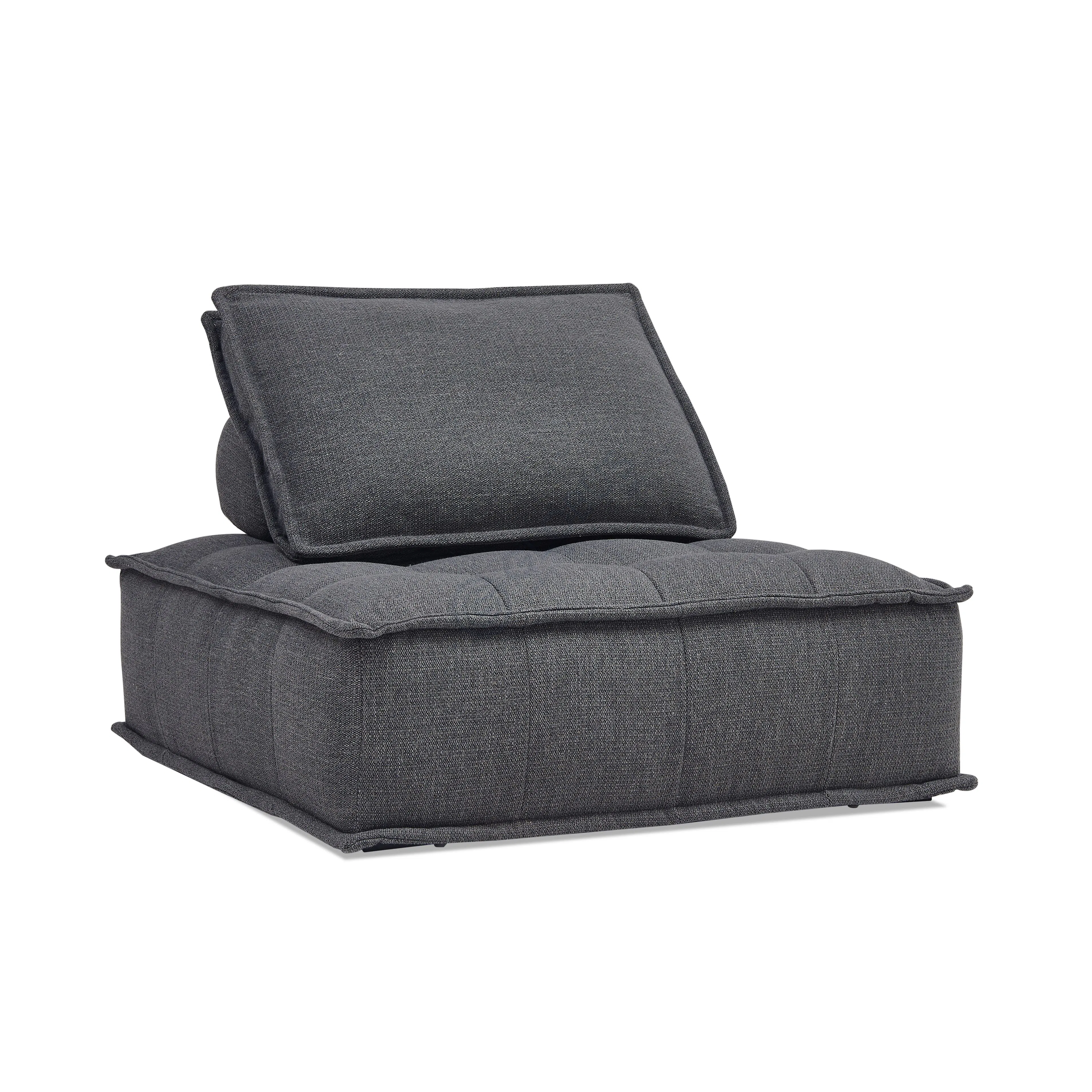 A solid wood and plywood frame provides a sturdy base for generous foam padding. Each module rests on subtle, recessed feet that enhance the floating effect without drawing attention from the overall form.