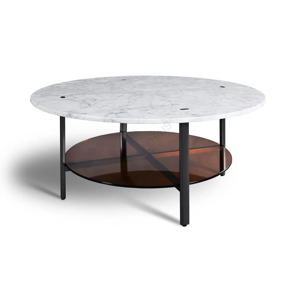 Elevate the elegance of your living space with our refined and sophisticated side table. This piece marvelously fuses the timeless beauty of natural marble with the strength and sleekness of stainless steel, offering a smart and sturdy addition to any room. The round, cool marble top is the perfect perch for your drinks, books, or decorative items, while the lower shelf, accented with a geometric design, provides additional space for your essentials and displays. Its clean lines and modern silhouette ensure this table integrates seamlessly into a variety of interior styles, from contemporary minimalism to classic elegance. Make a subtle, yet undeniable statement in your home with this chic and functional side table.