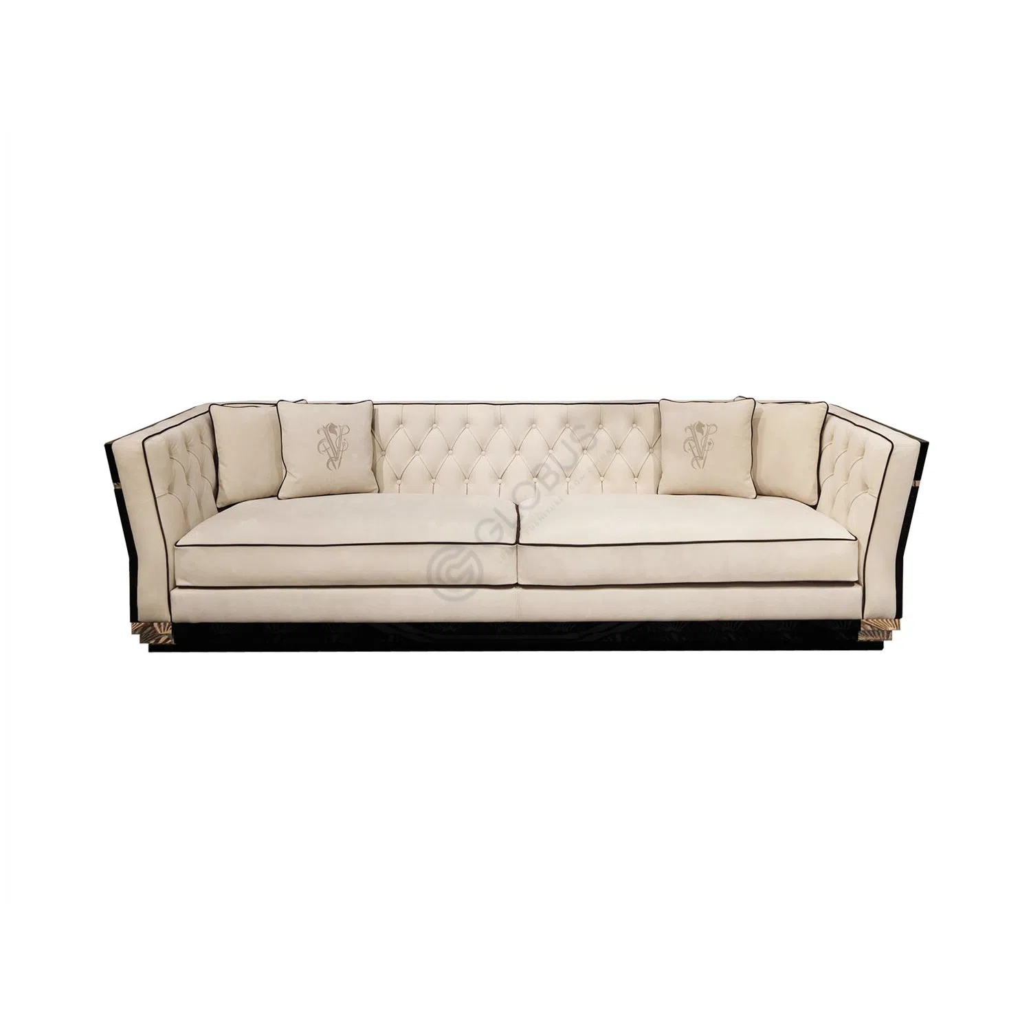 Positioned in a living room, this armchair functions not only as comfortable seating but also as a significant design element. It introduces a touch of refined style and elegance, enhancing the overall aesthetic of the space with its distinctive look and feel.