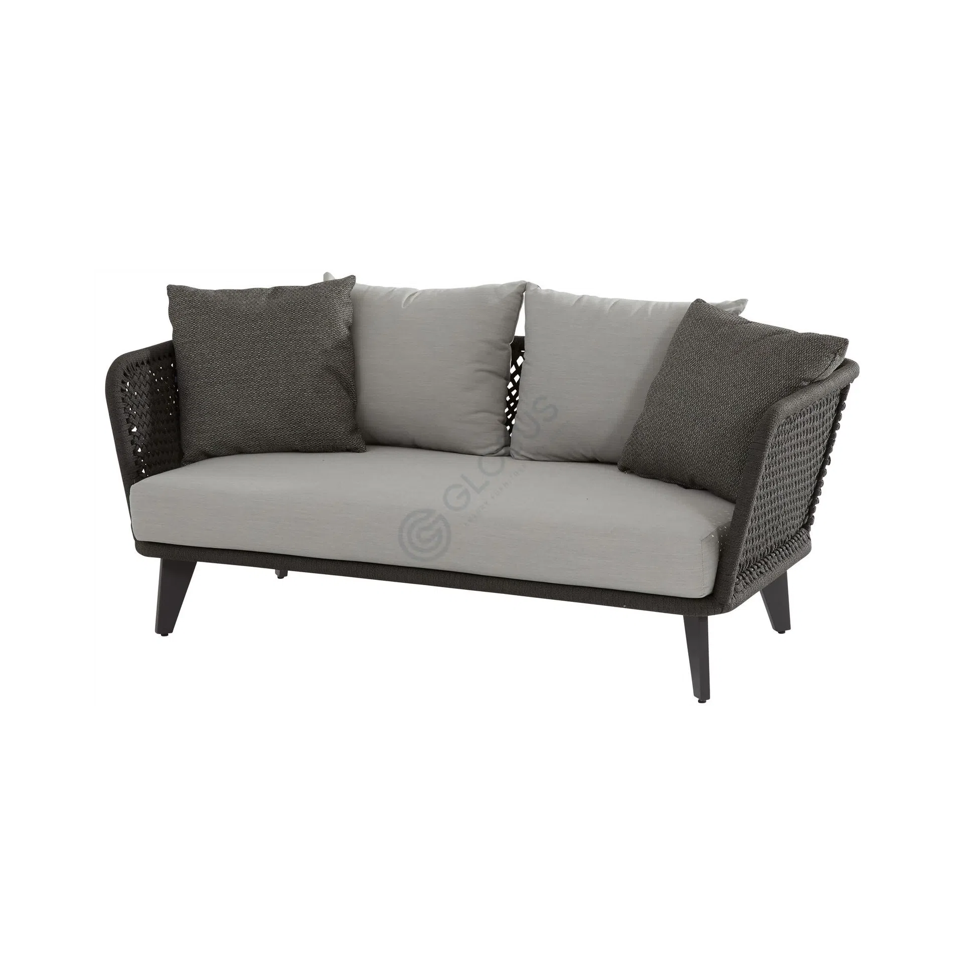 Crafted with a robust aluminum frame, the armchair features intricate rope weaving along the arms and back, providing both visual interest and structural support. The combination of resilient aluminum and durable rope ensures lasting quality in outdoor environments.
