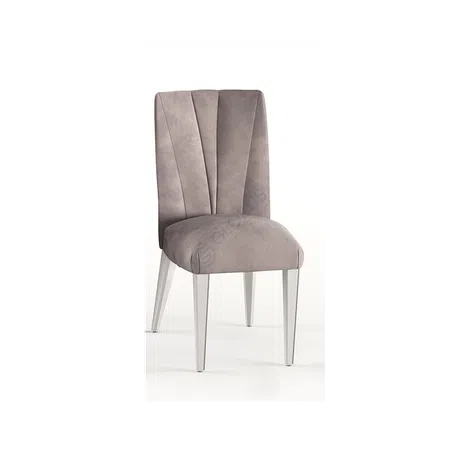The chair features a sculpted silhouette with clean lines and gentle curves, upholstered in sumptuously soft suede leather. The subtle vertical stitching on the back adds a touch of tailored detail, enhancing its contemporary appeal.