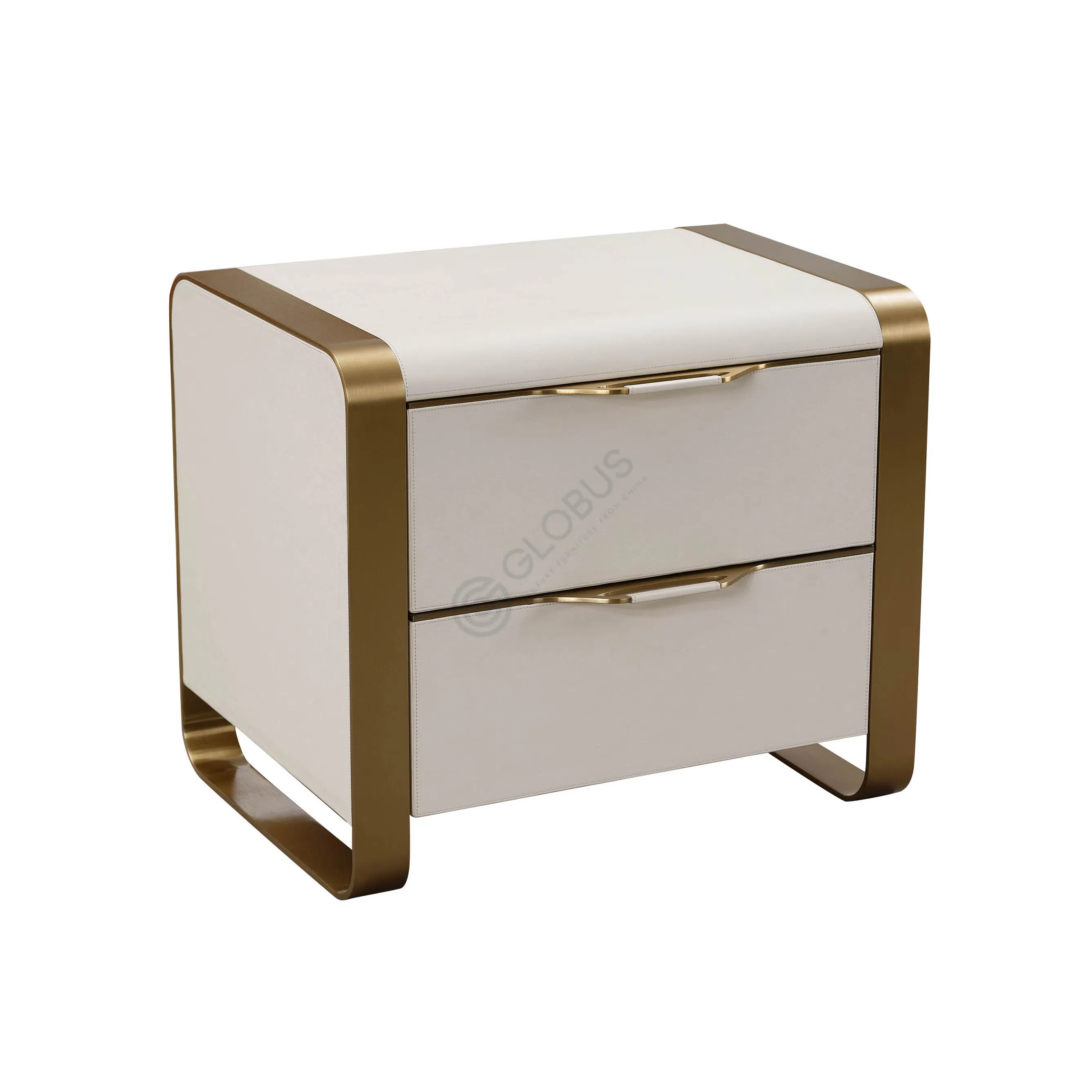 Crafted from a combination of solid wood and plywood, this chest features drawer fronts elegantly finished with leather. The striking frame and integrated drawer pulls are fashioned from polished stainless steel, adding a luxurious glint and durable structure. Its design incorporates three smooth-gliding drawers, providing practical storage.