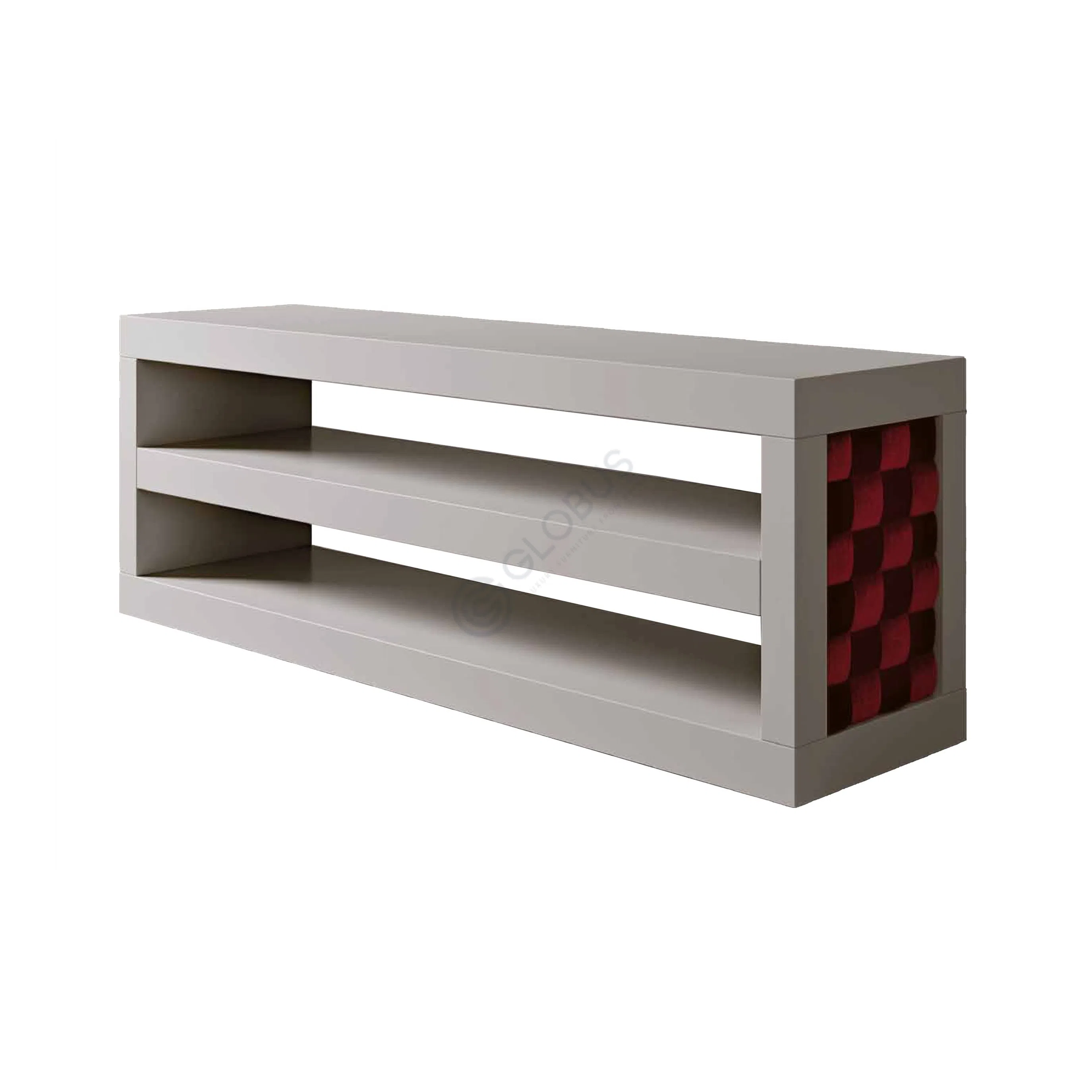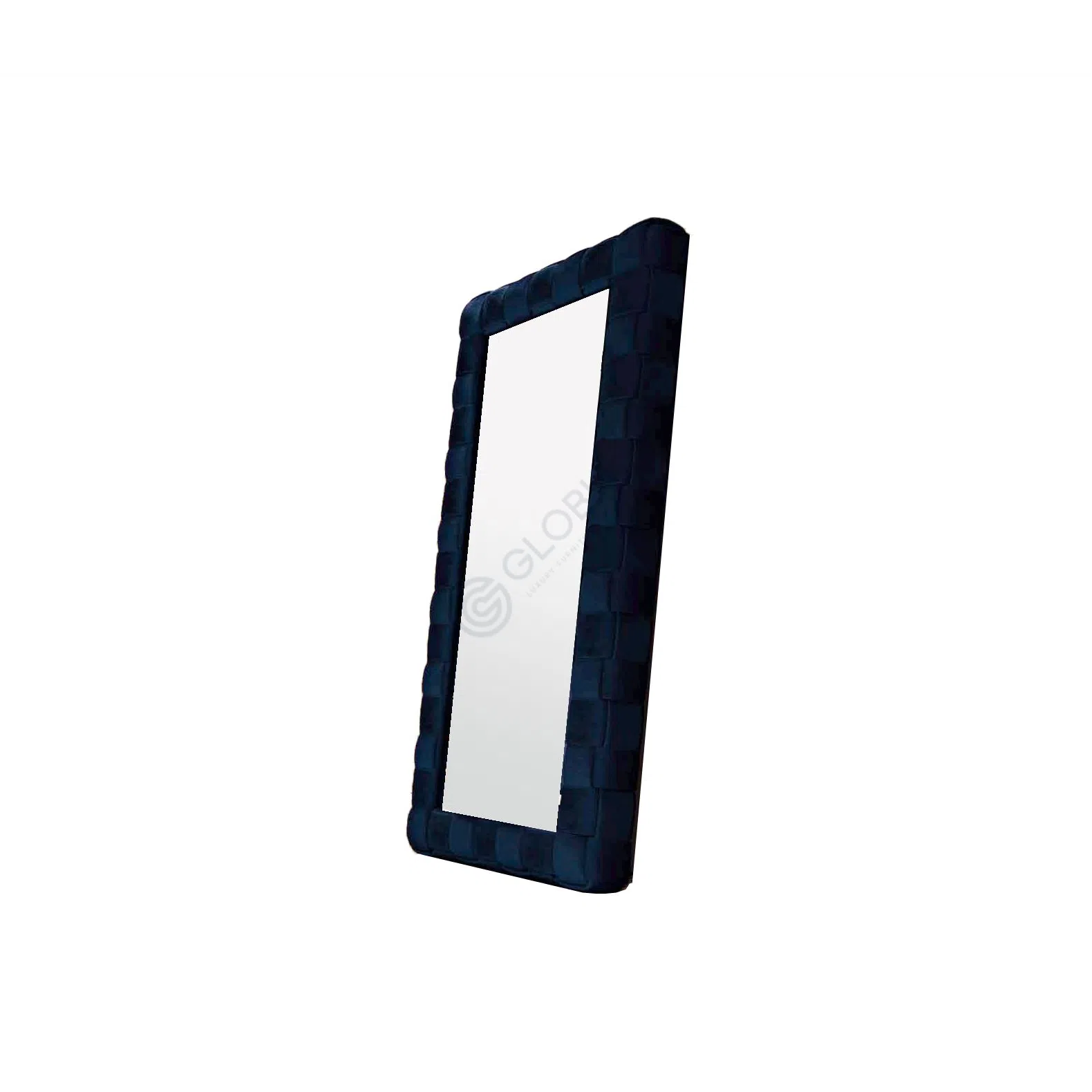 This bed presents a bold statement piece for the contemporary bedroom, featuring a striking blend of Art Deco influence and modern design principles. The prominent headboard and matching frame base are upholstered in a luxurious suede leather, showcasing a distinctive, deep square quilting pattern that adds visual texture and sophistication.