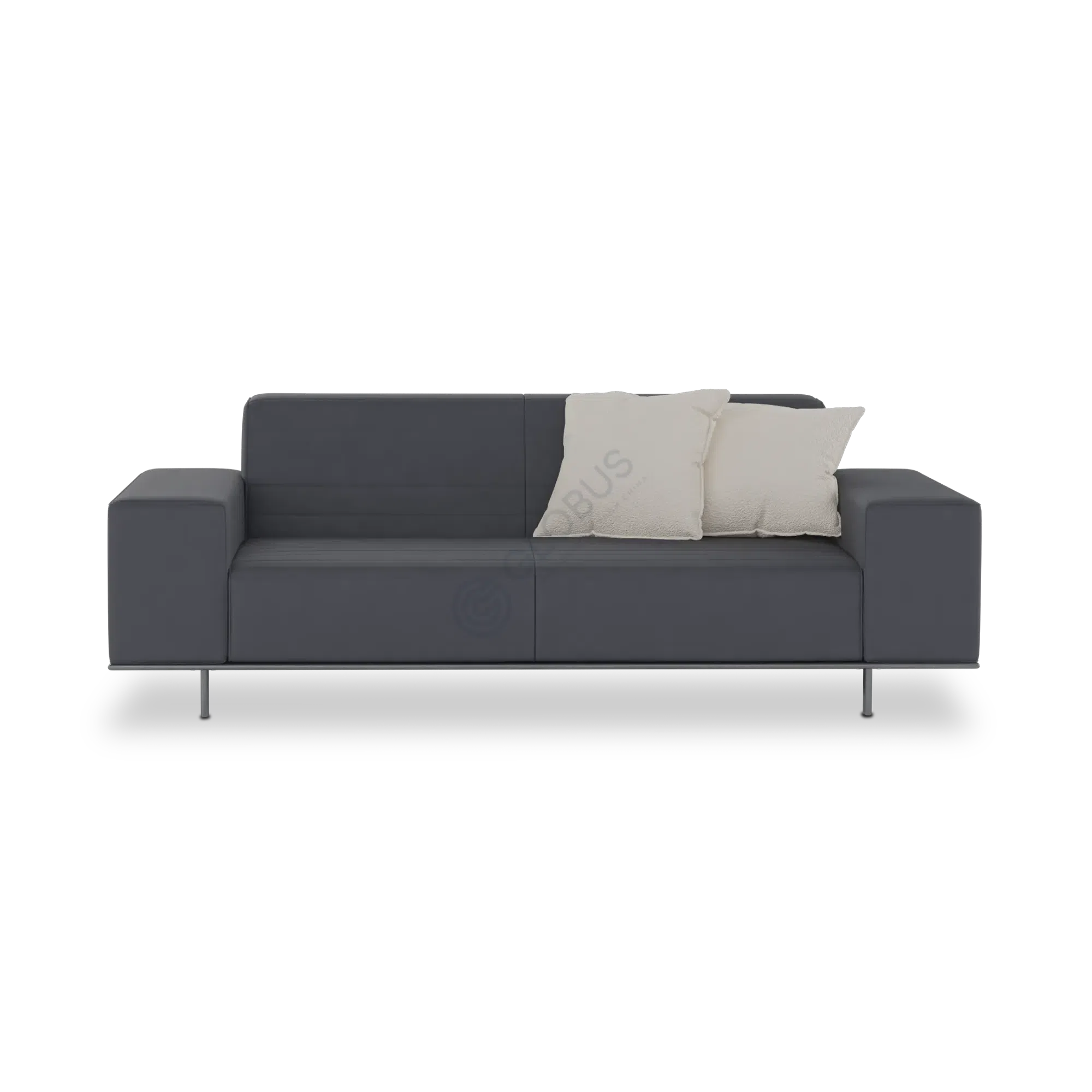Comfort is central to the design, with seat and back cushions generously filled with feather, offering a soft and supportive place to unwind. The thoughtful combination of materials ensures both lasting quality and a comfortable experience, reflecting the modern design principles that guide this piece.