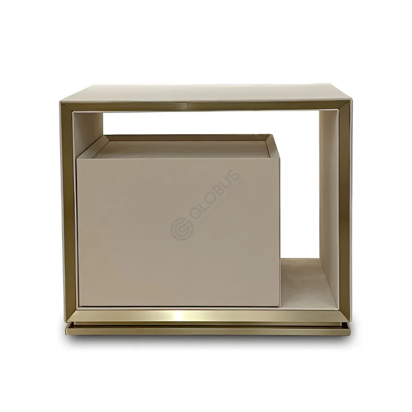 Integrated into the sides of the headboard are functional nightstands, providing convenient surfaces and discreet storage. Their design complements the bed, crafted with materials that maintain a cohesive and streamlined look.