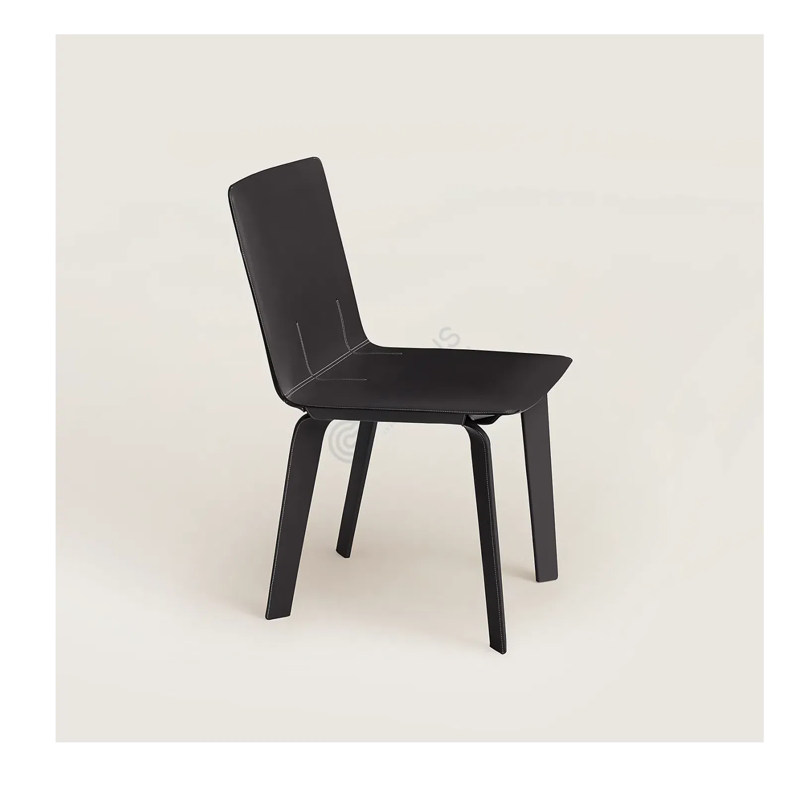 This modern dining chair presents a refined aesthetic through its considered use of premium materials. It features a structure expertly wrapped in luxurious saddle leather, offering both durability and a sophisticated tactile experience. The clean, flowing lines of the design are enhanced by the seamless integration of the metal frame beneath the leather surface.