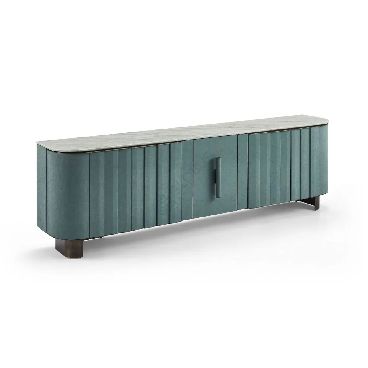 Introducing a modern TV stand designed to bring refined elegance to your living or bedroom space. This piece features a beautiful top crafted from natural marble, showcasing unique natural patterns and a luxurious, smooth finish.