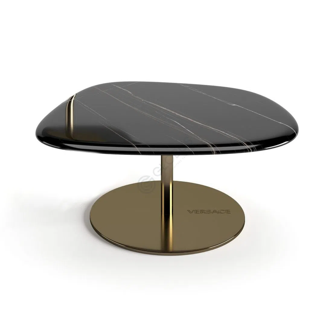 This side table brings a touch of refined modernity to the living space. It features a unique top crafted from natural marble, showcasing a dark surface with elegant, natural veining. The shape of the top is softly curved, moving away from traditional geometric forms for a more organic feel.