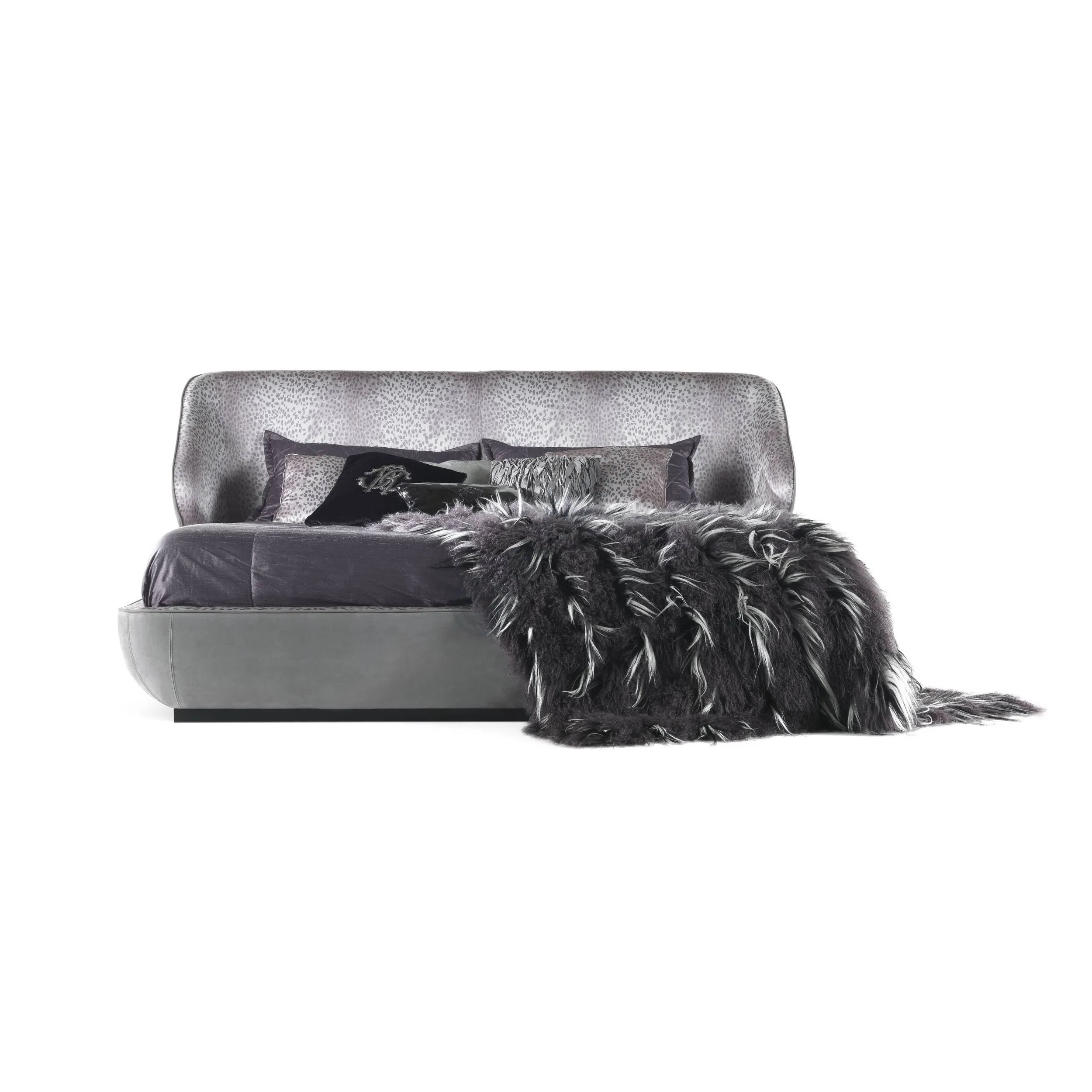 A modern armchair defined by its enveloping shell and organic leaf-patterned upholstery brings a refined touch to any living space. The gently curved back and deep seat cradle the body while the subtle play of black and white tones in the textile evokes a sense of quiet nature.