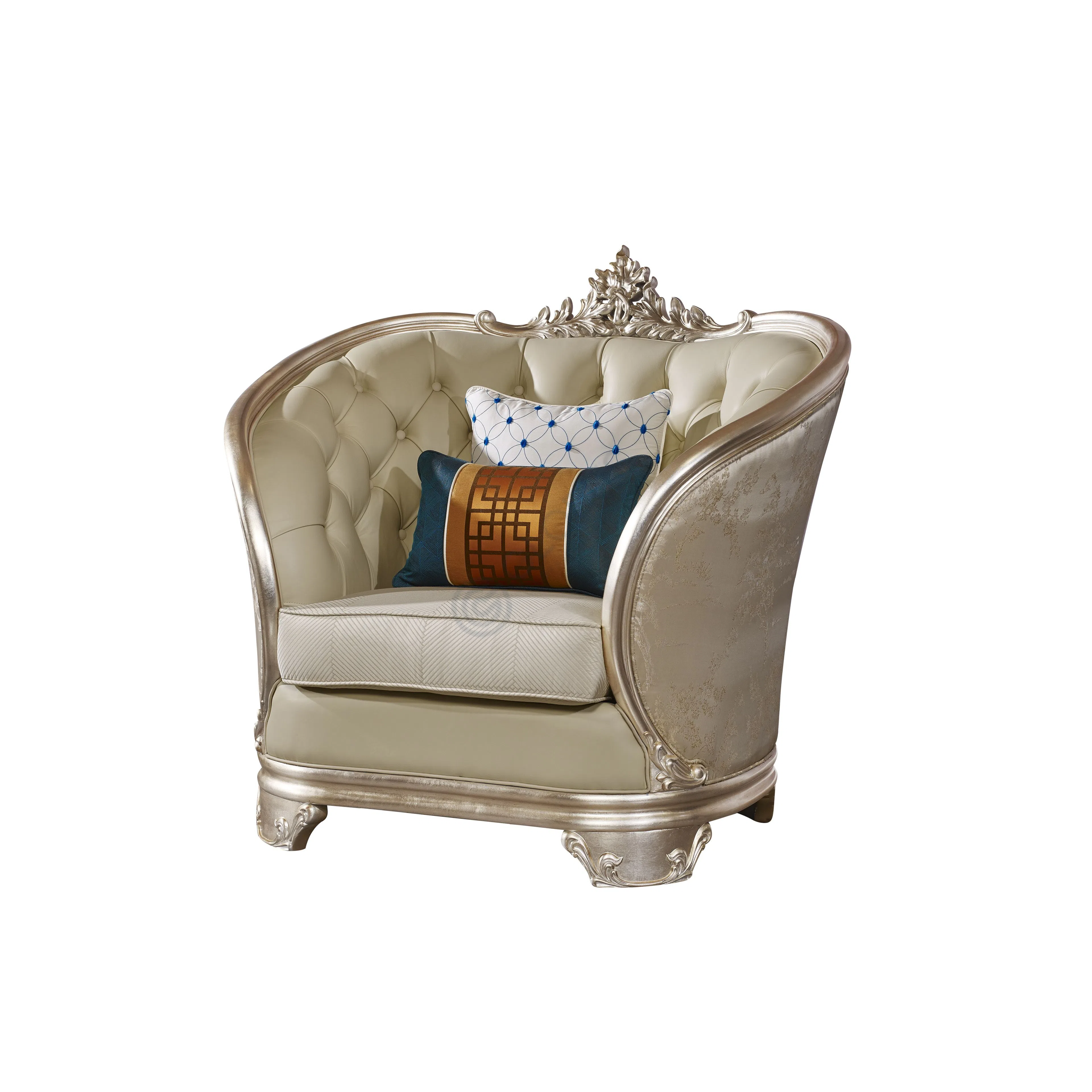 This sofa offers a refined interpretation of the European classic style, bringing an air of timeless elegance to the living room. Its graceful silhouette features gently curved arms and a beautifully shaped backrest, creating a welcoming and luxurious presence.