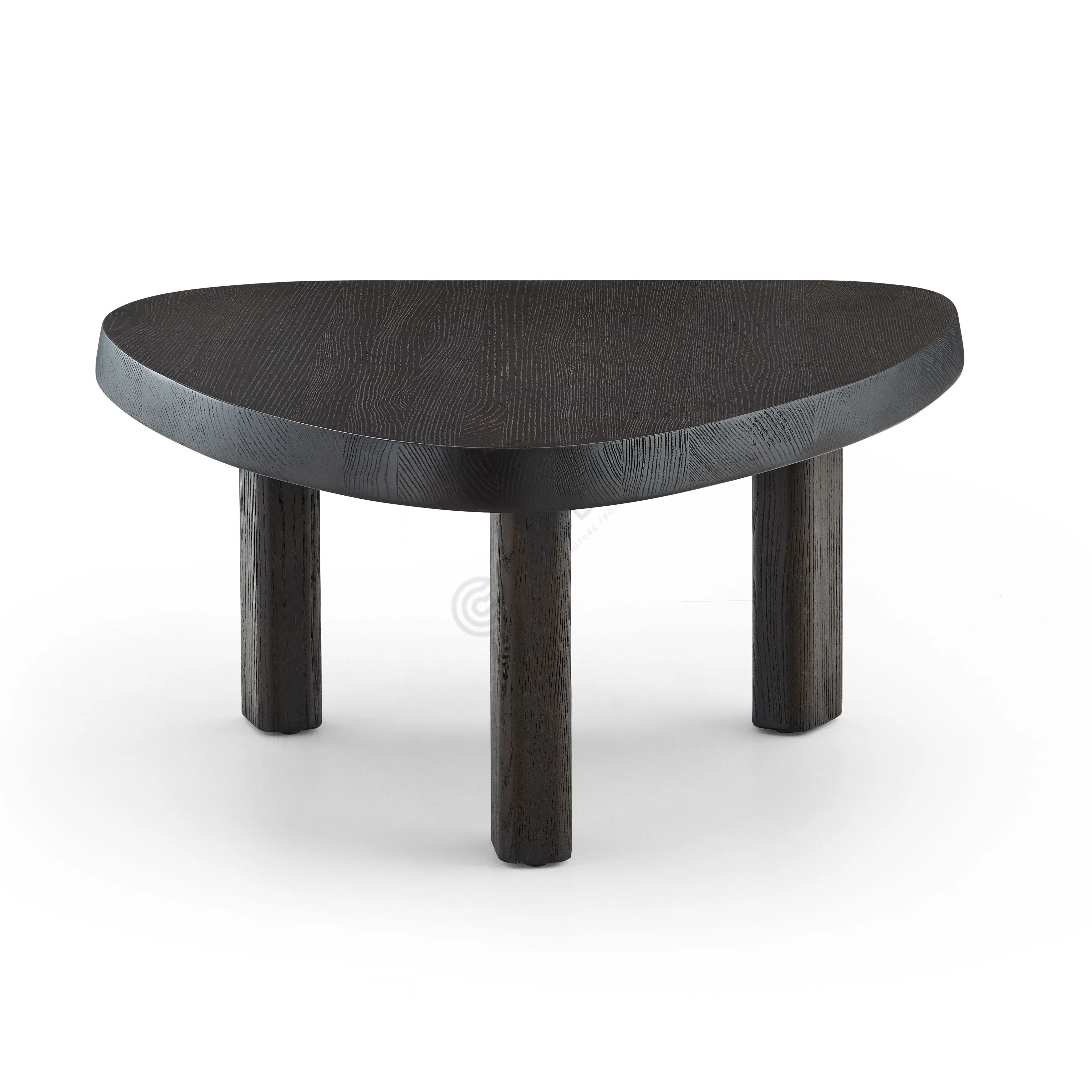 The rich, dark wood finish enhances the table's sleek aesthetic, versatile enough to complement a variety of interior styles. Its sturdy three-legged base design ensures stability, while the unique asymmetrical top adds a subtle touch of character.