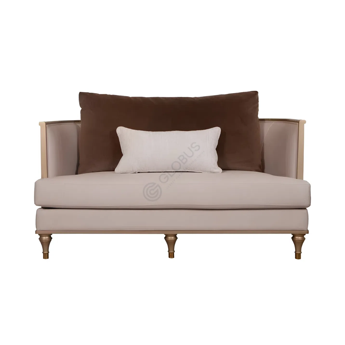 An elegant armchair designed in the neo-classic style, perfect for a distinguished living room setting. It features a substantial frame built from solid wood and plywood, ensuring lasting form and stability.