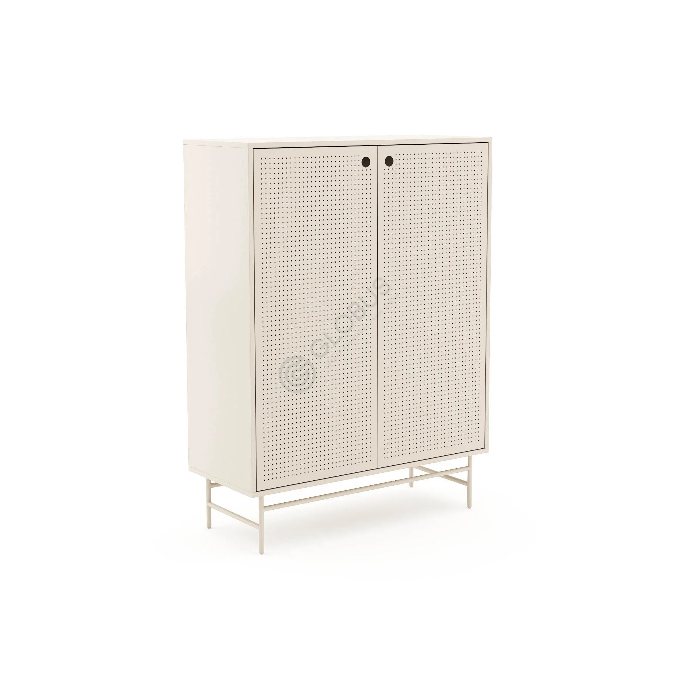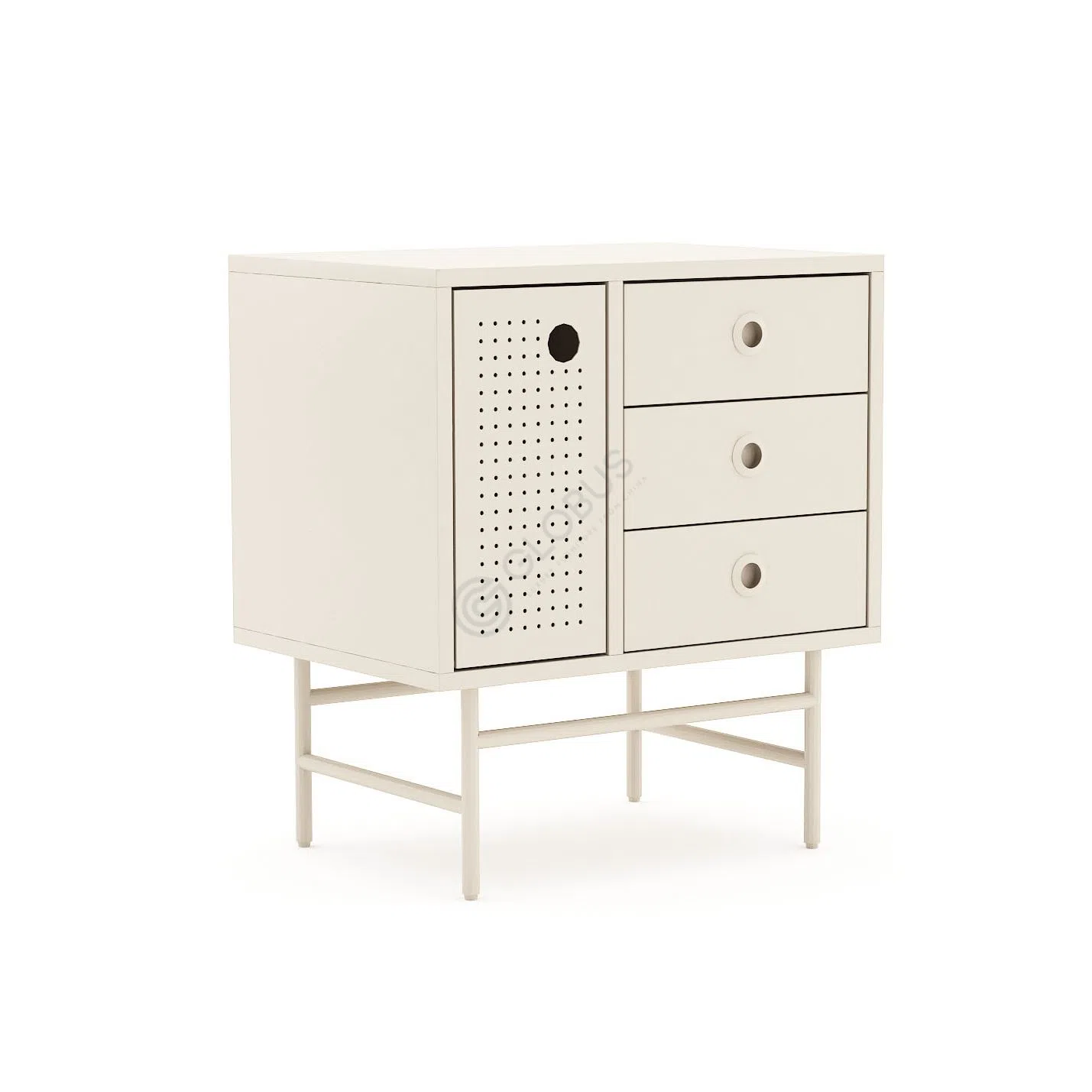 With four spacious drawers and a side compartment, it offers practical storage for organizing clothes, accessories, or other household items. The perforated panel on the cupboard door adds a subtle design detail, elevating its visual appeal without overwhelming the overall look. This dresser is an ideal blend of practicality and modern design, making it a functional centerpiece for your home.