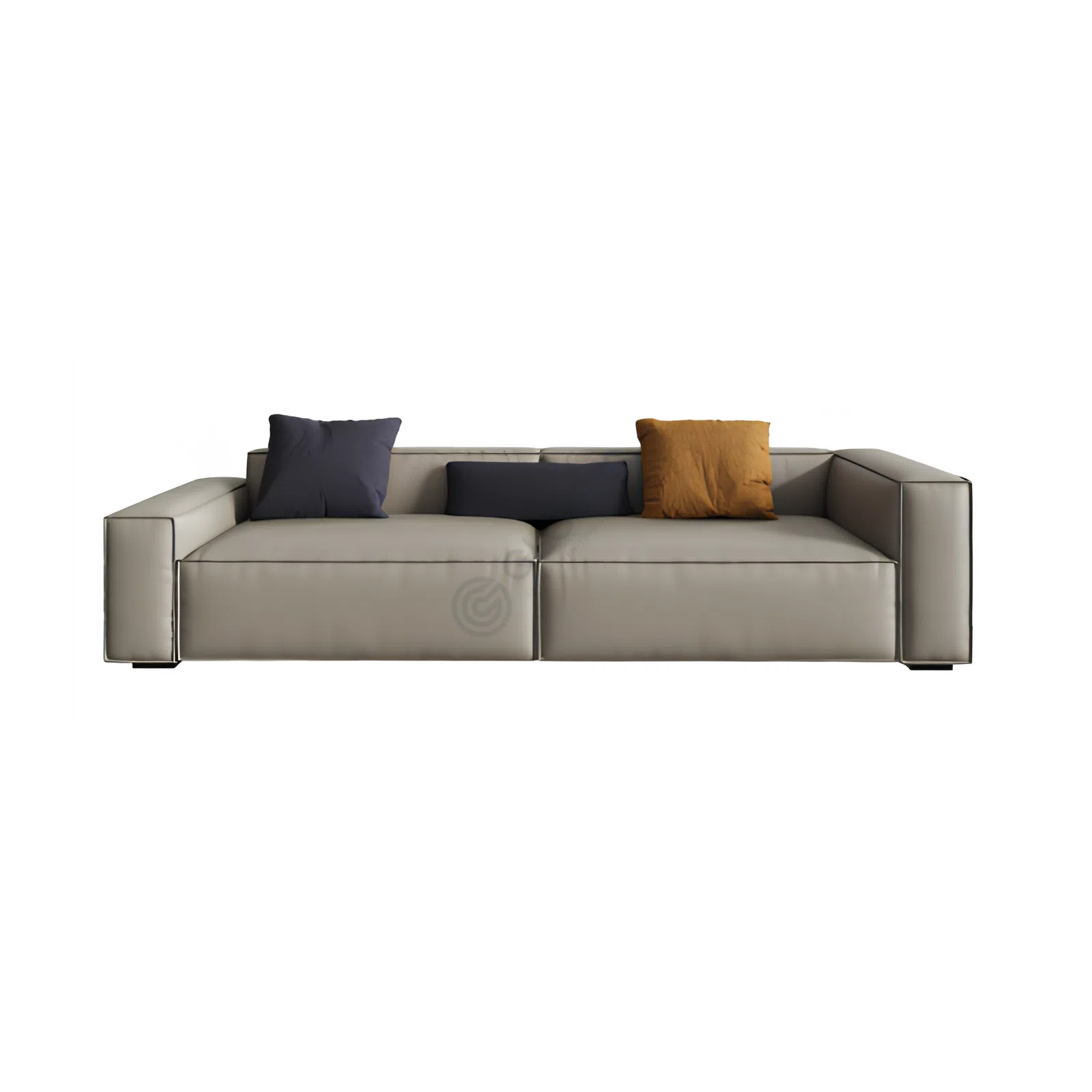 This modern sofa offers a statement of understated elegance for the contemporary living room. Its clean lines and substantial form create a sense of calm sophistication. The low-profile design is both inviting and visually grounding within a space.